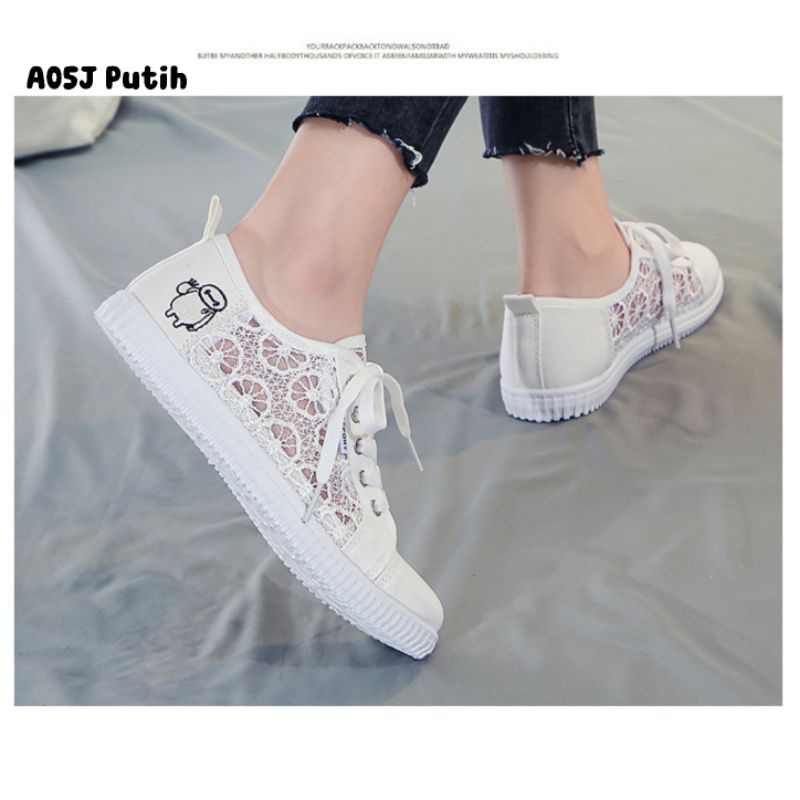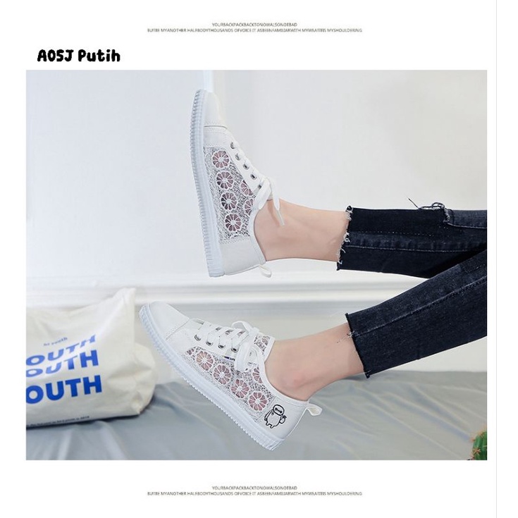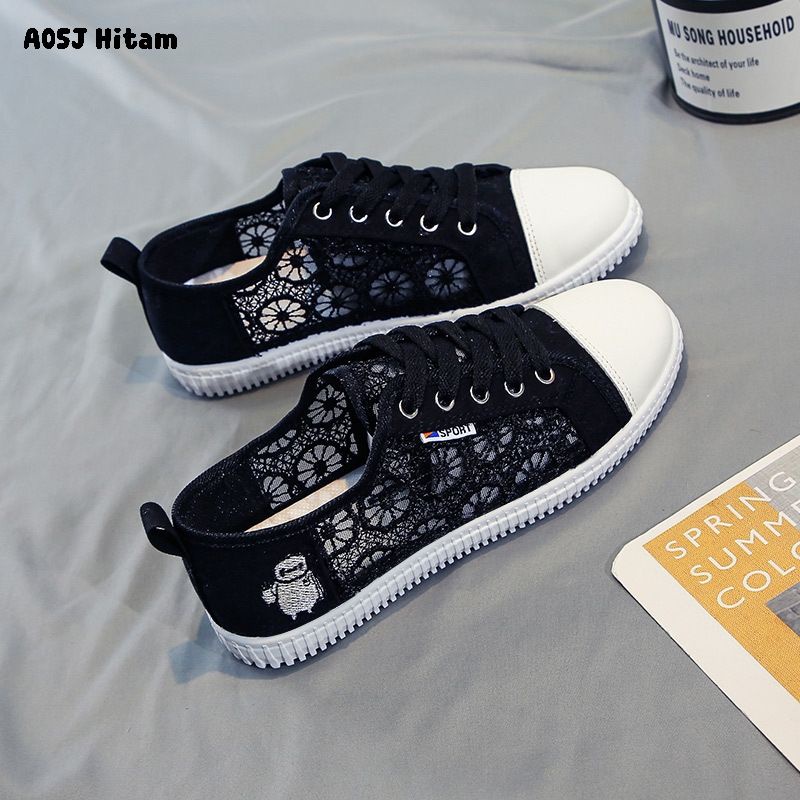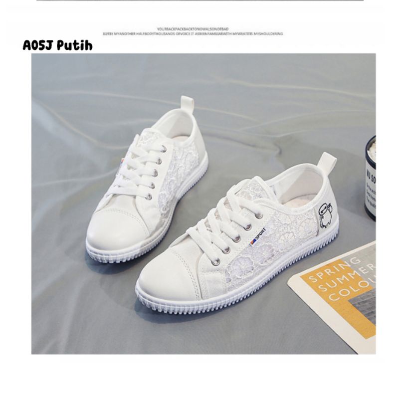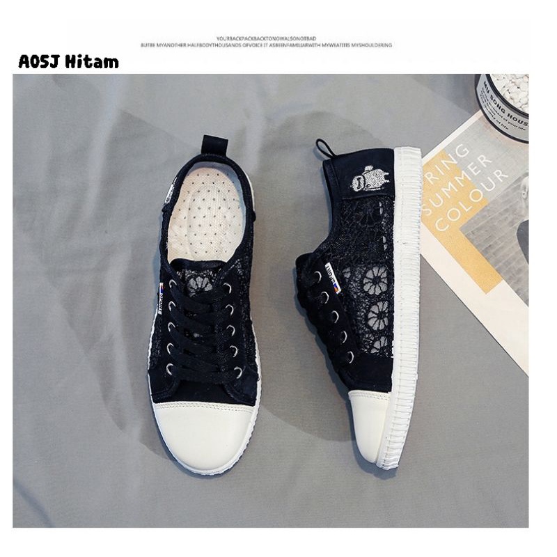 Zeita - SEPATU SNEAKERS LACE WANITA KOREA KIM SO HYUN MODEL SIMPLE STYLE TALI CASUAL BROKAT IMPORT TRENDY FASHION SHOES A05J