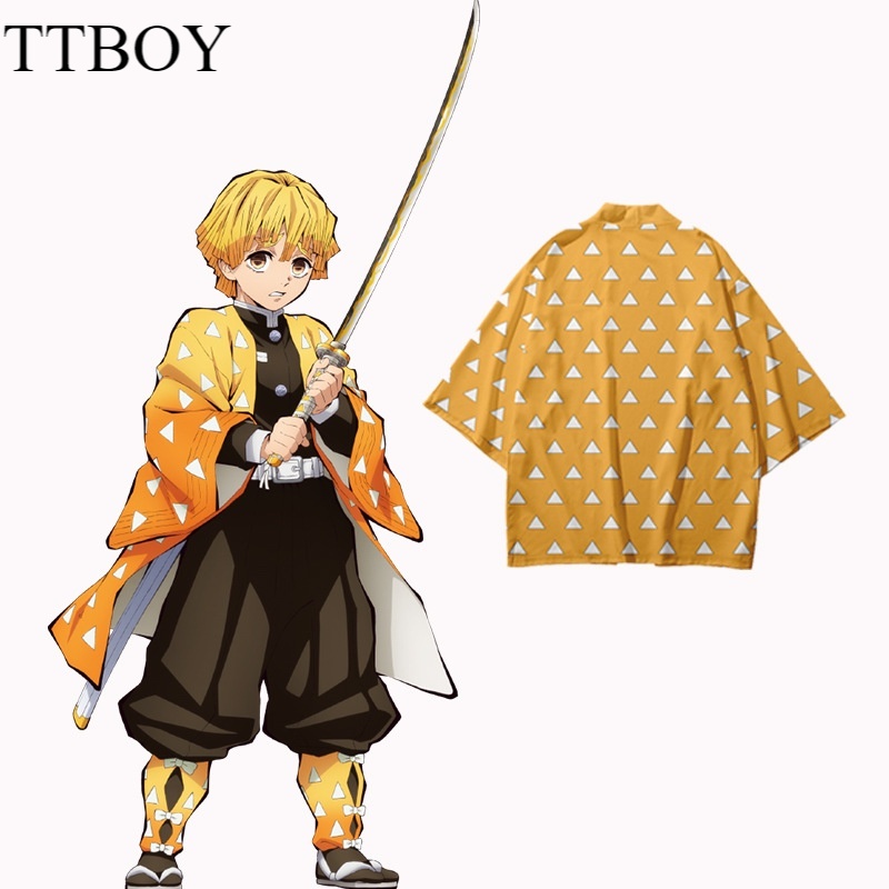 Zenitsu Demon Slayer Anime Cartoon New HOT Demon Slayer Yellow Samurai Women Men Kimono Pasangan Loose Oversize Harajuku Kimono Haori Obi Cardigan Beach Yukata Japanese Streetwear Kimonos