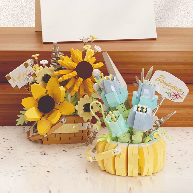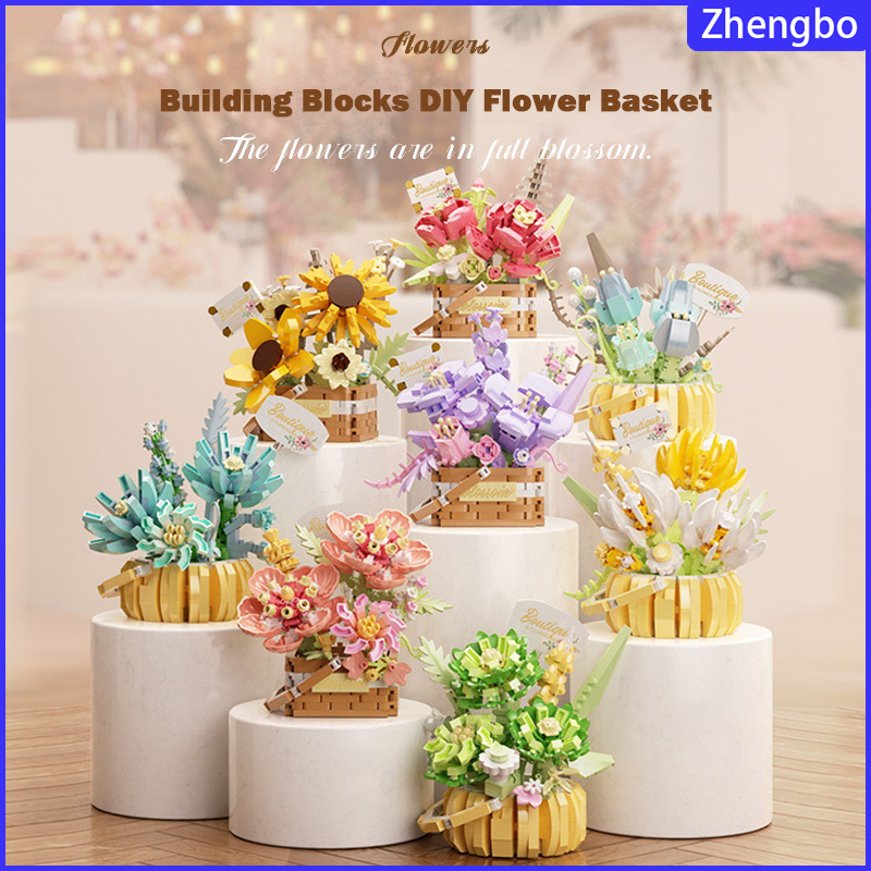 Zhengbo Mainan Pot Tanaman Bunga DIY Plant Dekorasi Mainan Balok Nano Block Mainan Anak Perempuan