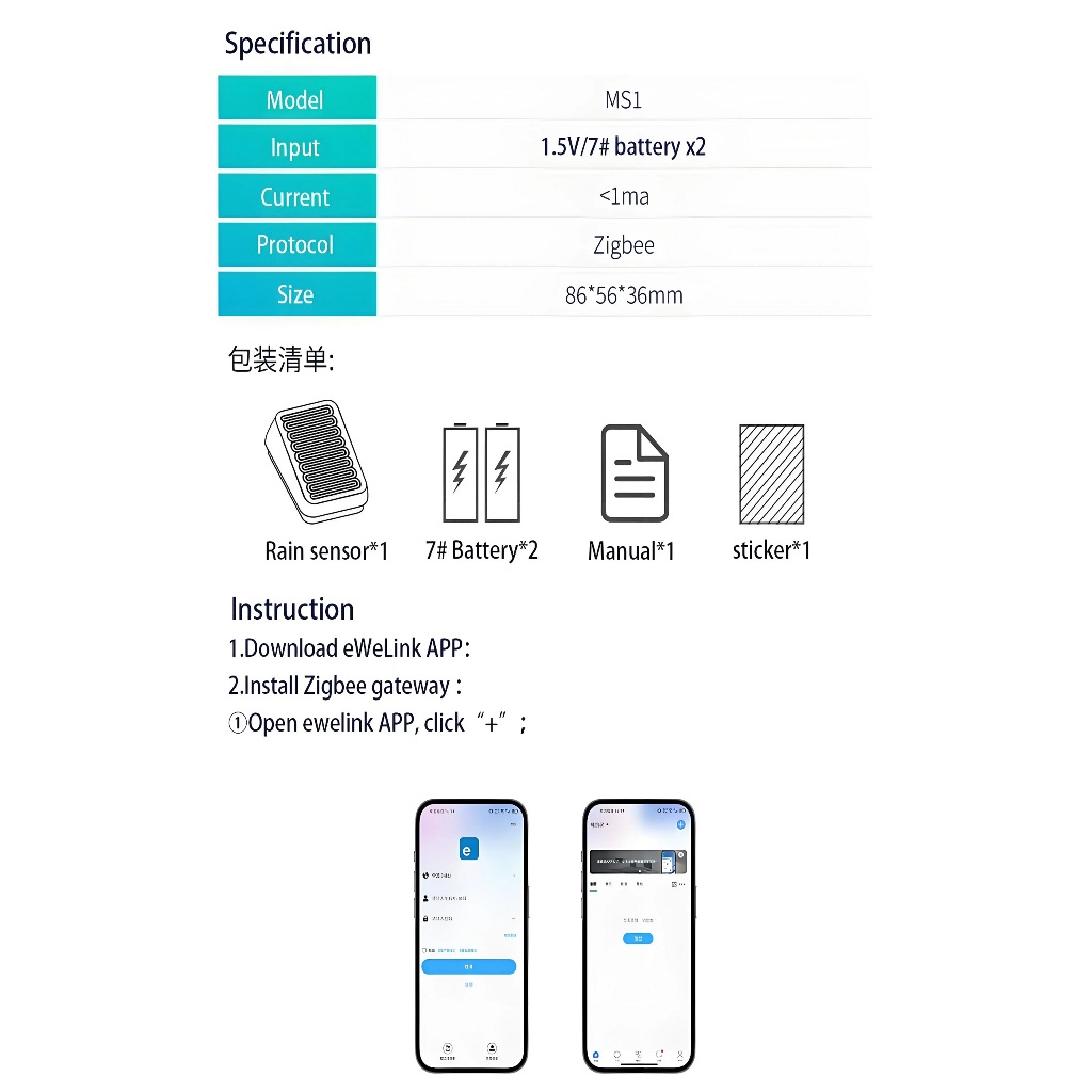 ZIGBEE MS1 Rain And Flood Water Outdoor Sensor eWelink APP