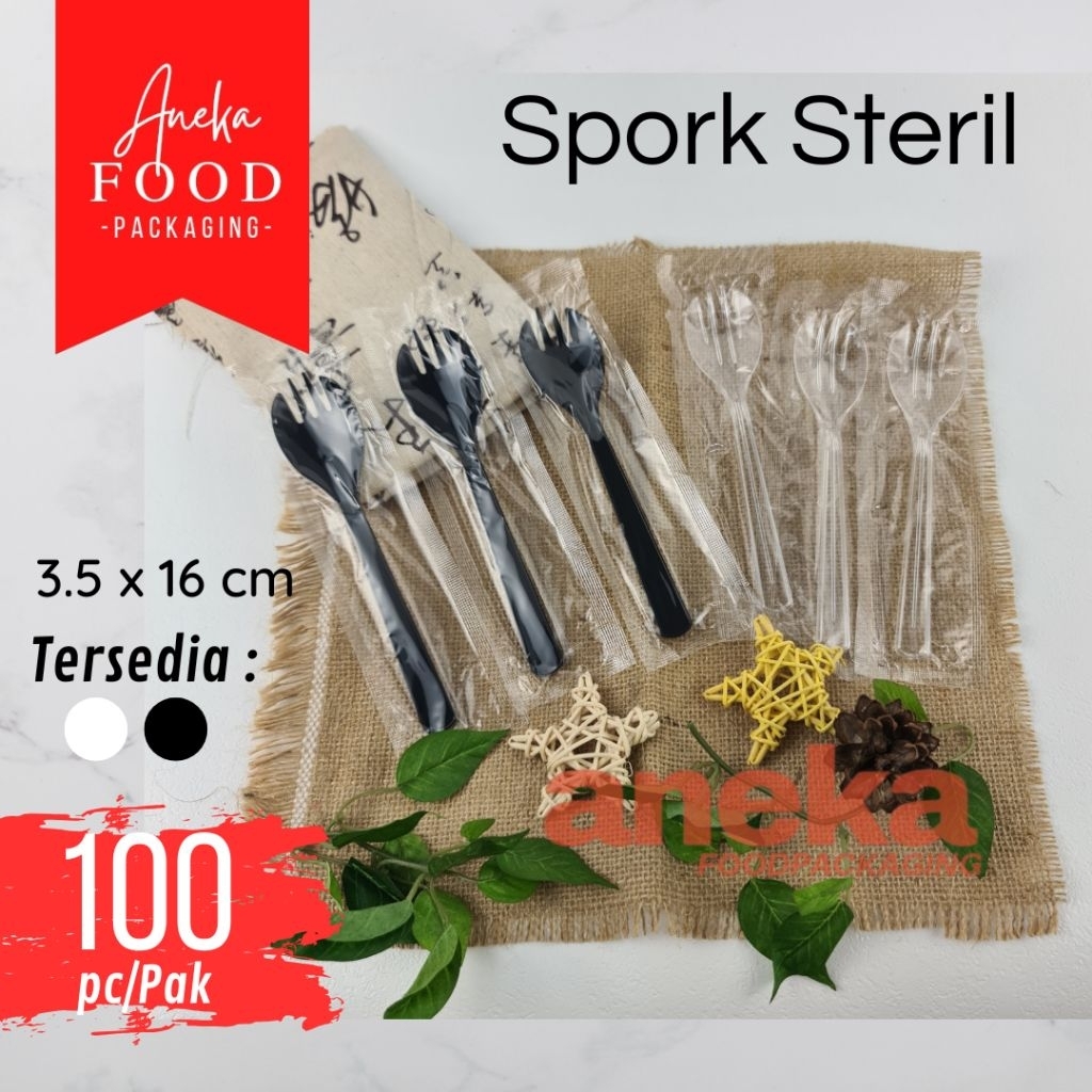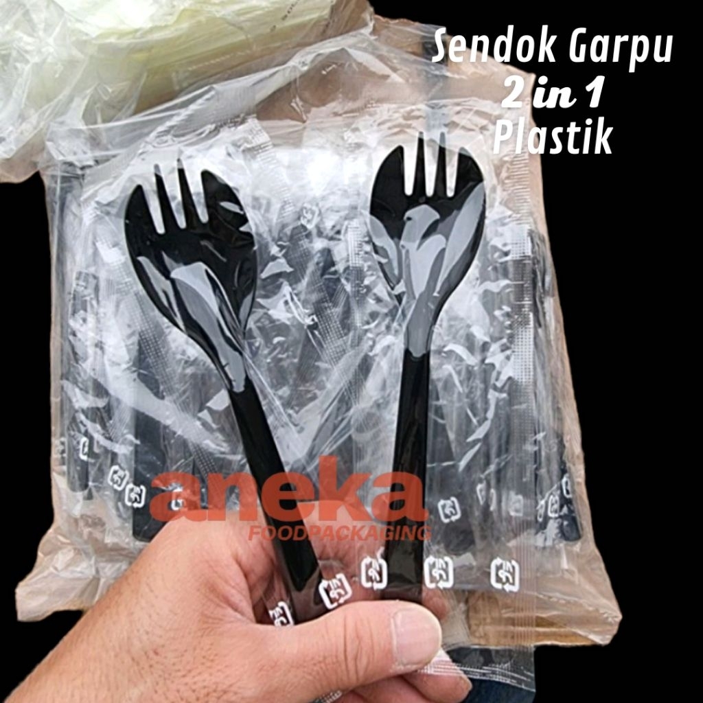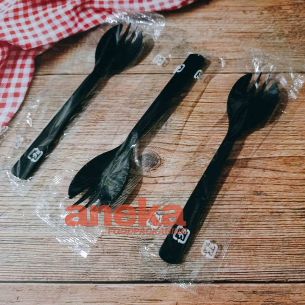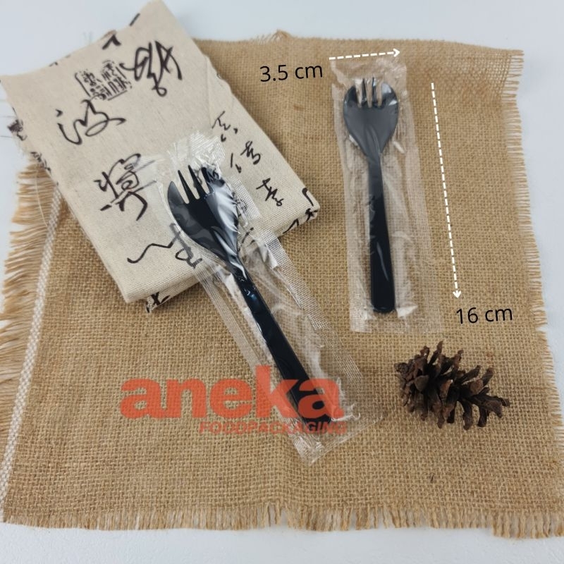 100pc- Sendok spork plastik STERIL 2in1 sendok garpu gase 2 in 1 BENING & HITAM higienis