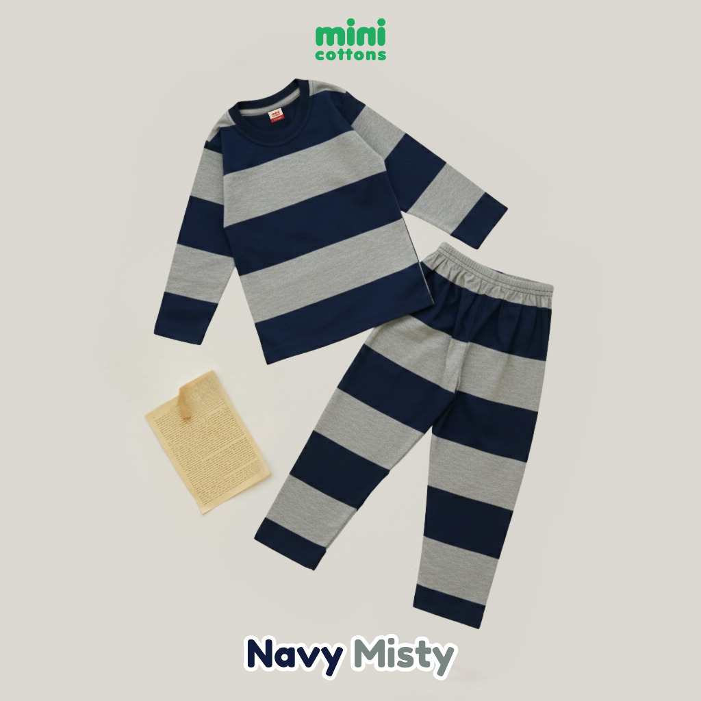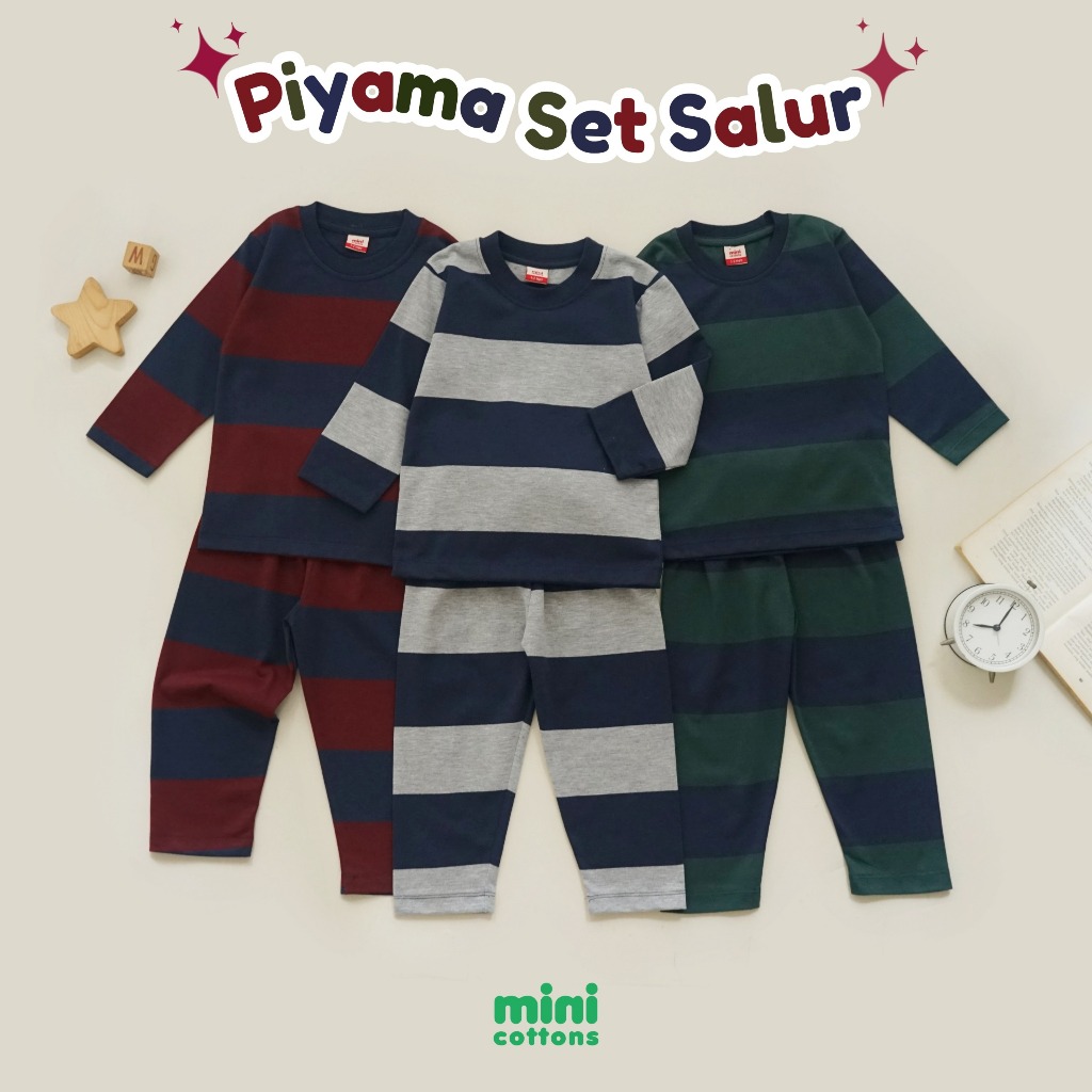 MINI COTTONS Piyama Anak Salur Setelan Baju Tidur Anak Stripe 1-12 Tahun