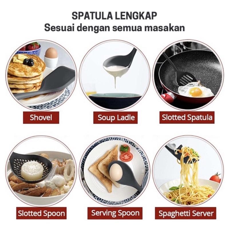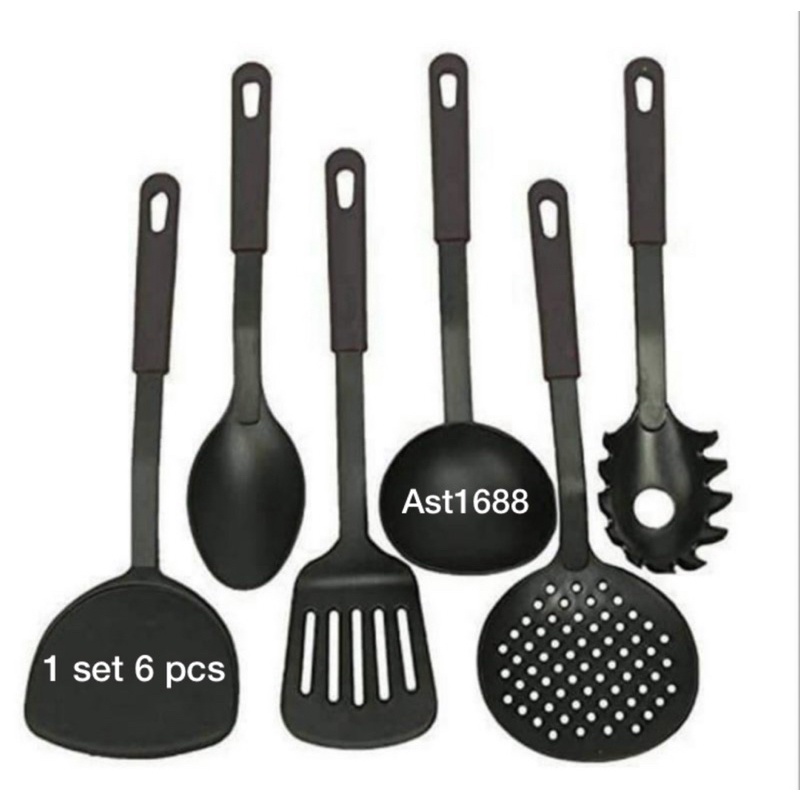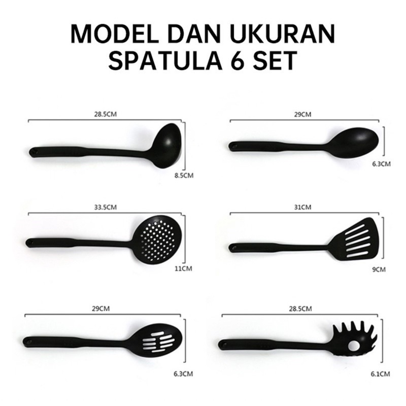 Spatula Kitchen Set 6in1 Alat Cooking Sutil sodek Plastik Warna Hitam