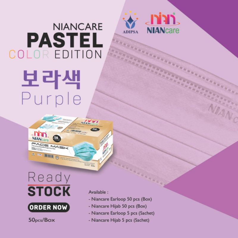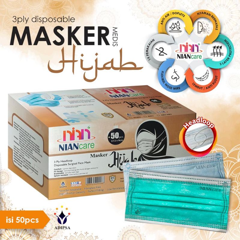 Masker Medis Nian Care 3 Ply Earloop Disposable Surgical Face Mask isi 50 Pcs