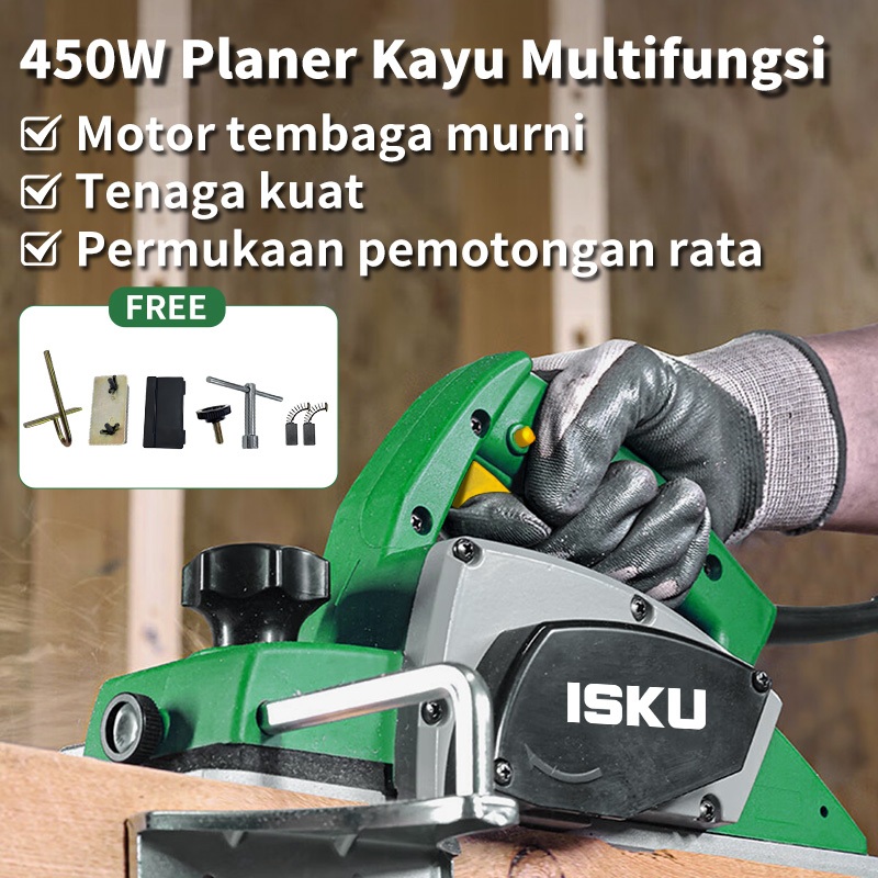 ISKU Mesin Serut Planner Mesin Ketam Listrik Mesin Serut Kayu Planer Multifungsi 450W Electric Planner power planer Motor Tembaga Murni