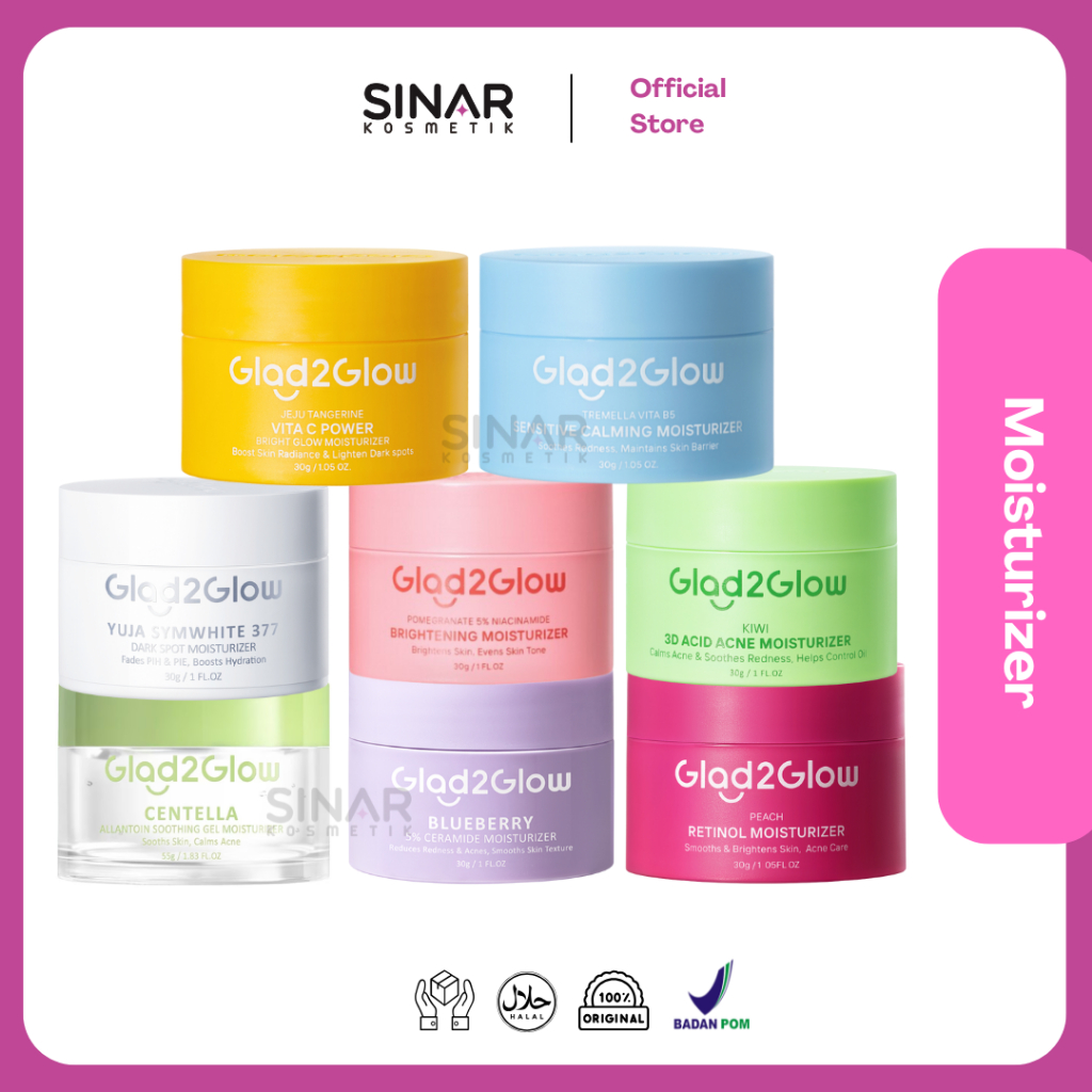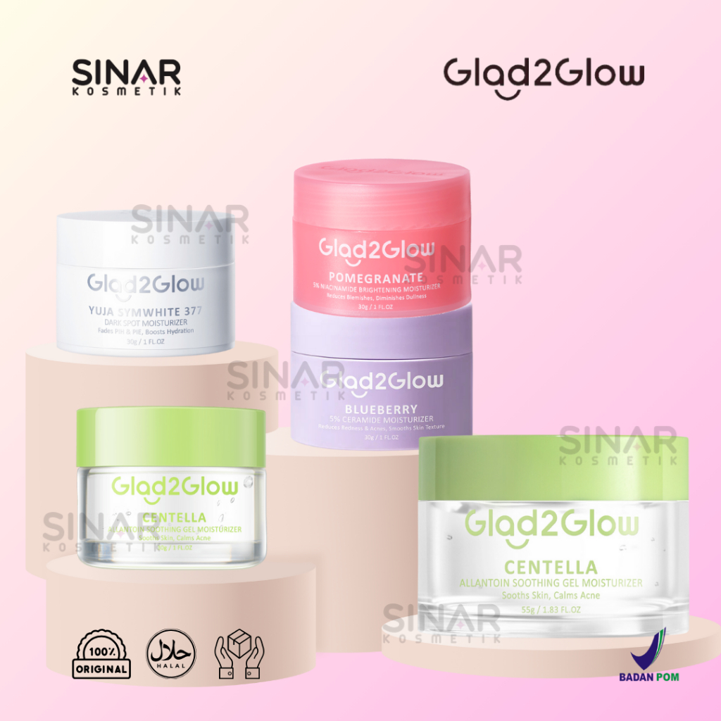 Glad2Glow Moisturizer Series 30gr 100gr - Tremella Vita B5 Sensitive Calming - Perfect Vita C - Yuja Symwhite 377 Dark Spot - Pomegranate 5% Niacinamide - 5% Blueberry Cream - Centella Allantoin Soothing Gel