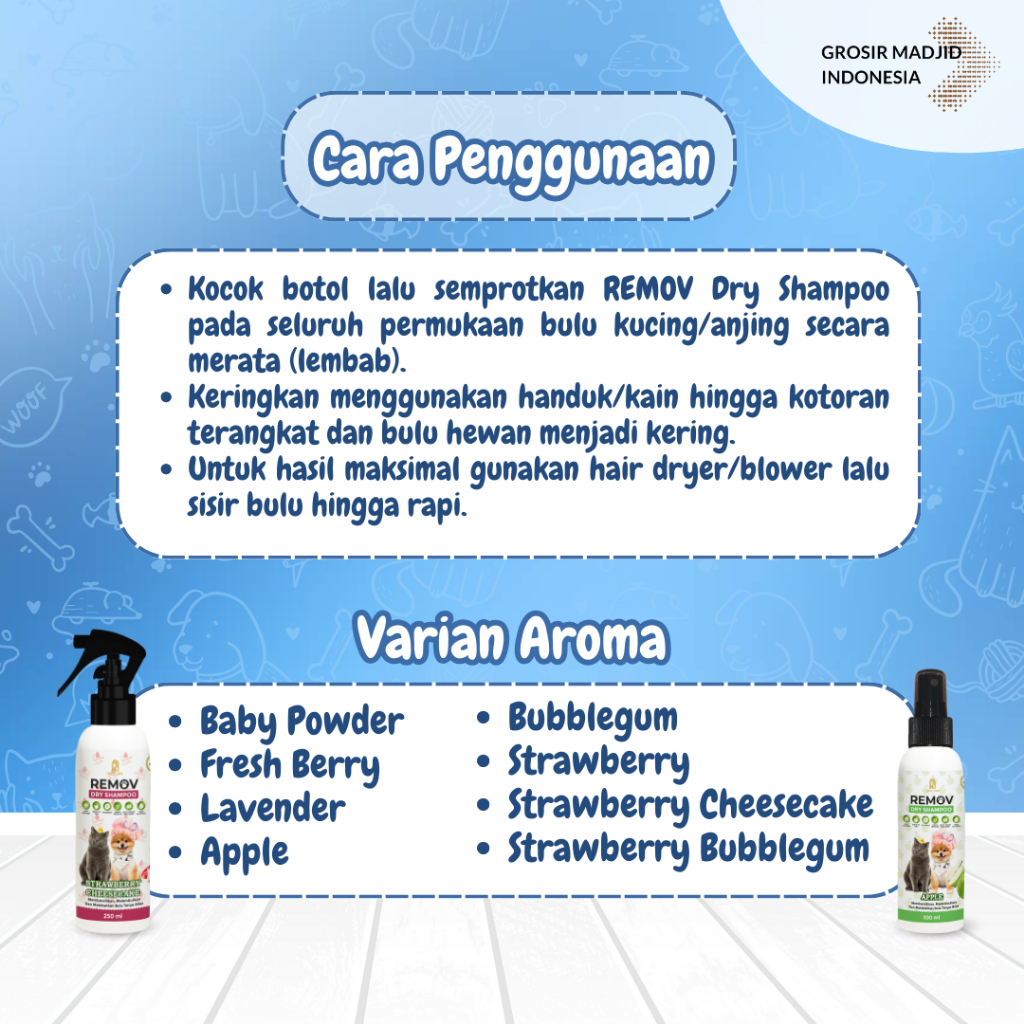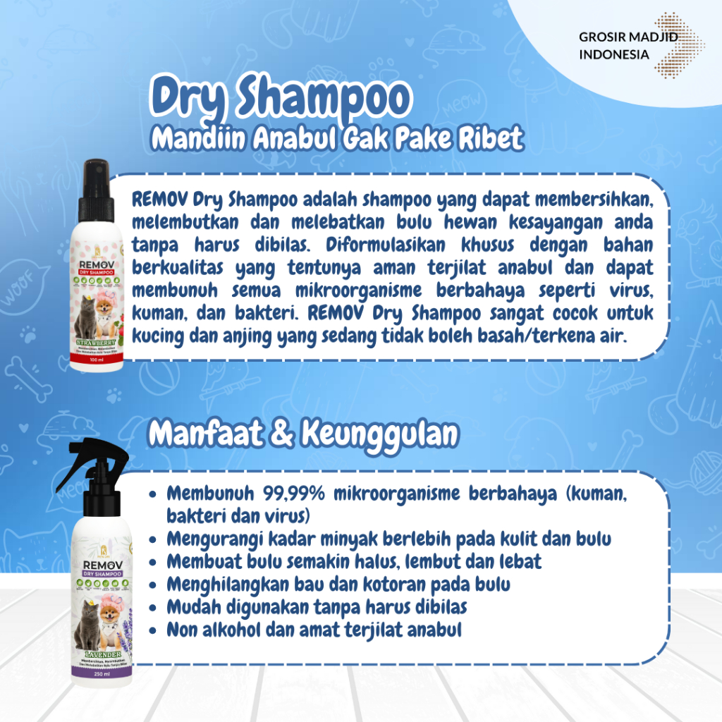 Grosir Madjid REMOV Dry Shampoo Waterless dan Aman Terjilat Anabul