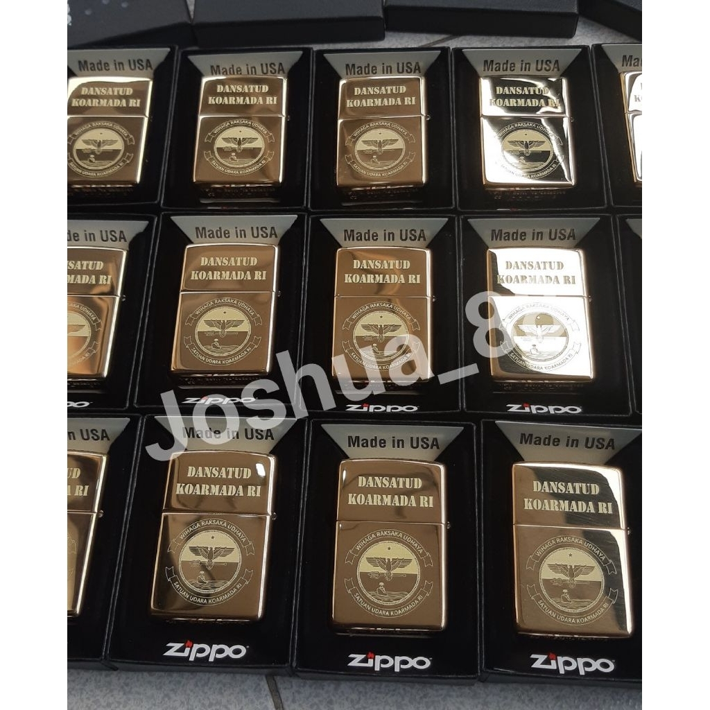 Zippo Original Korek Api Custom Ukir Logo Koarmada RI Gold Bisa Request Gambar Logo Sendiri