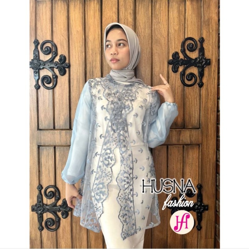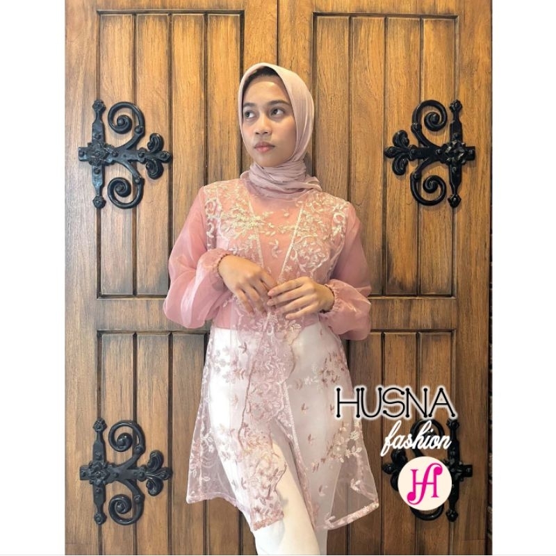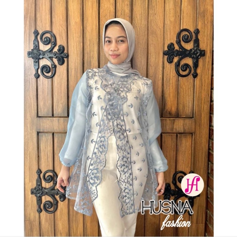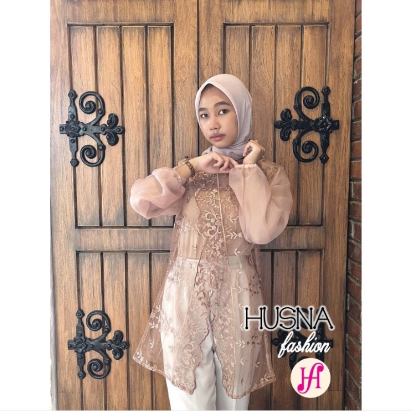 Zize Outer Brokat Silang Full Tile Bordir | Outer Silang Tile Sapto | Baju Hari Raya, Kondangan, Wisuda atau Bridesmaids Tunik Organza Panjang Muslim Wanita Cantik Dewasa
