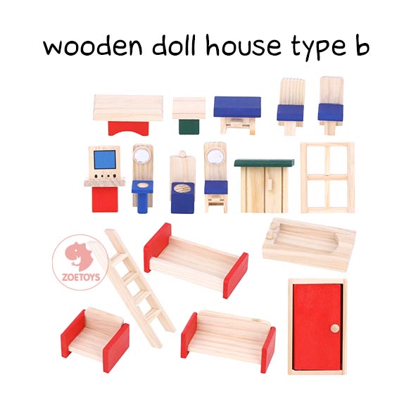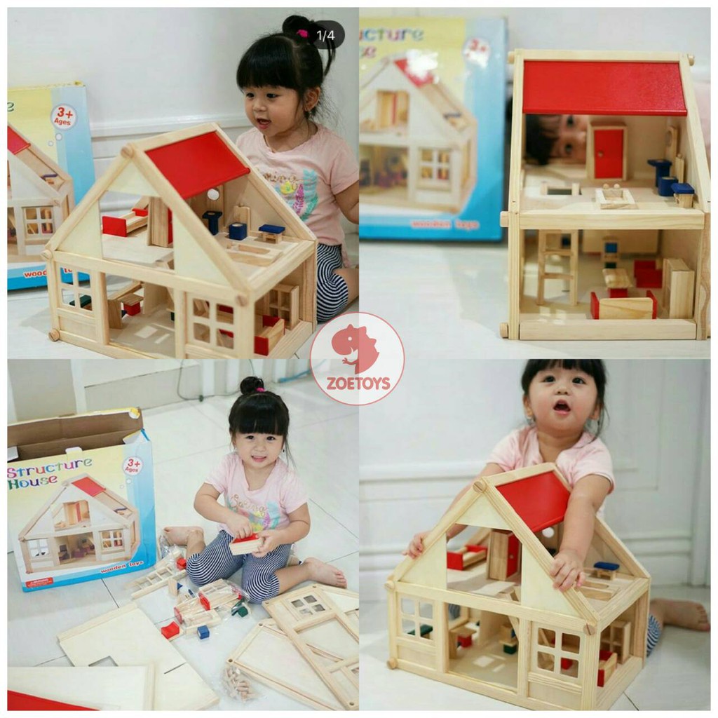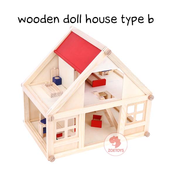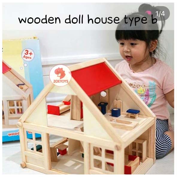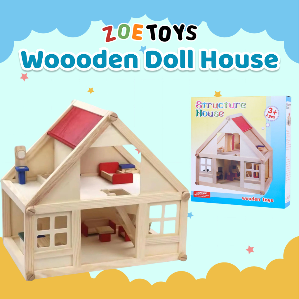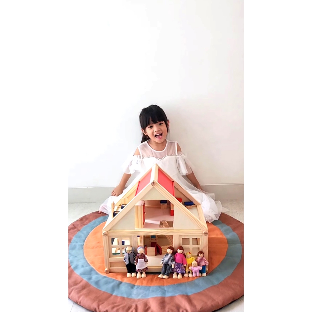 Zoetoys Wooden Doll House | Mainan Rumah Rumahan Boneka Kayu Keluarga Miniatur Furnitur Cari Kado