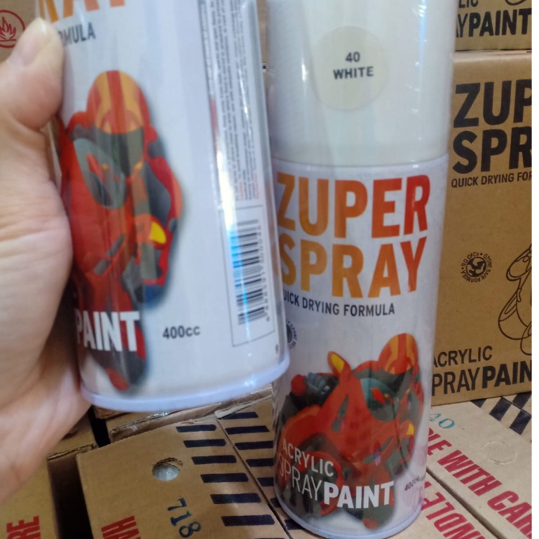 Zuper Spray Paint Pilok Pilox Cat Semprot Warna Standard 400ml (Hitam, Putih, Clear, Putih, Biru, Merah, Silver Metalik, Black Doff dll (400cc-Besar)