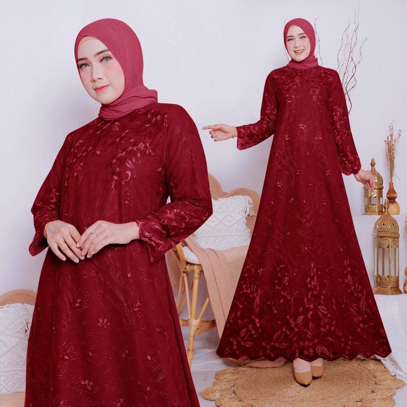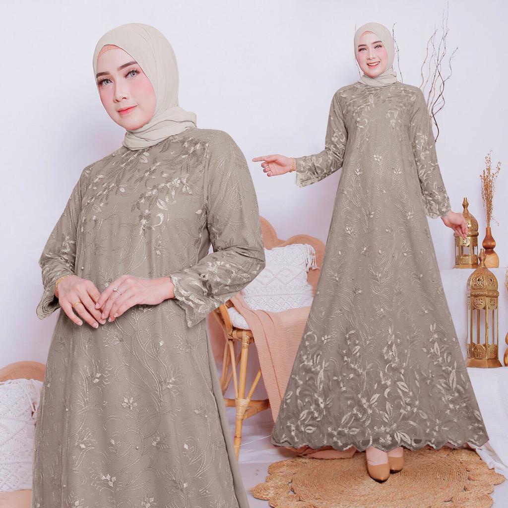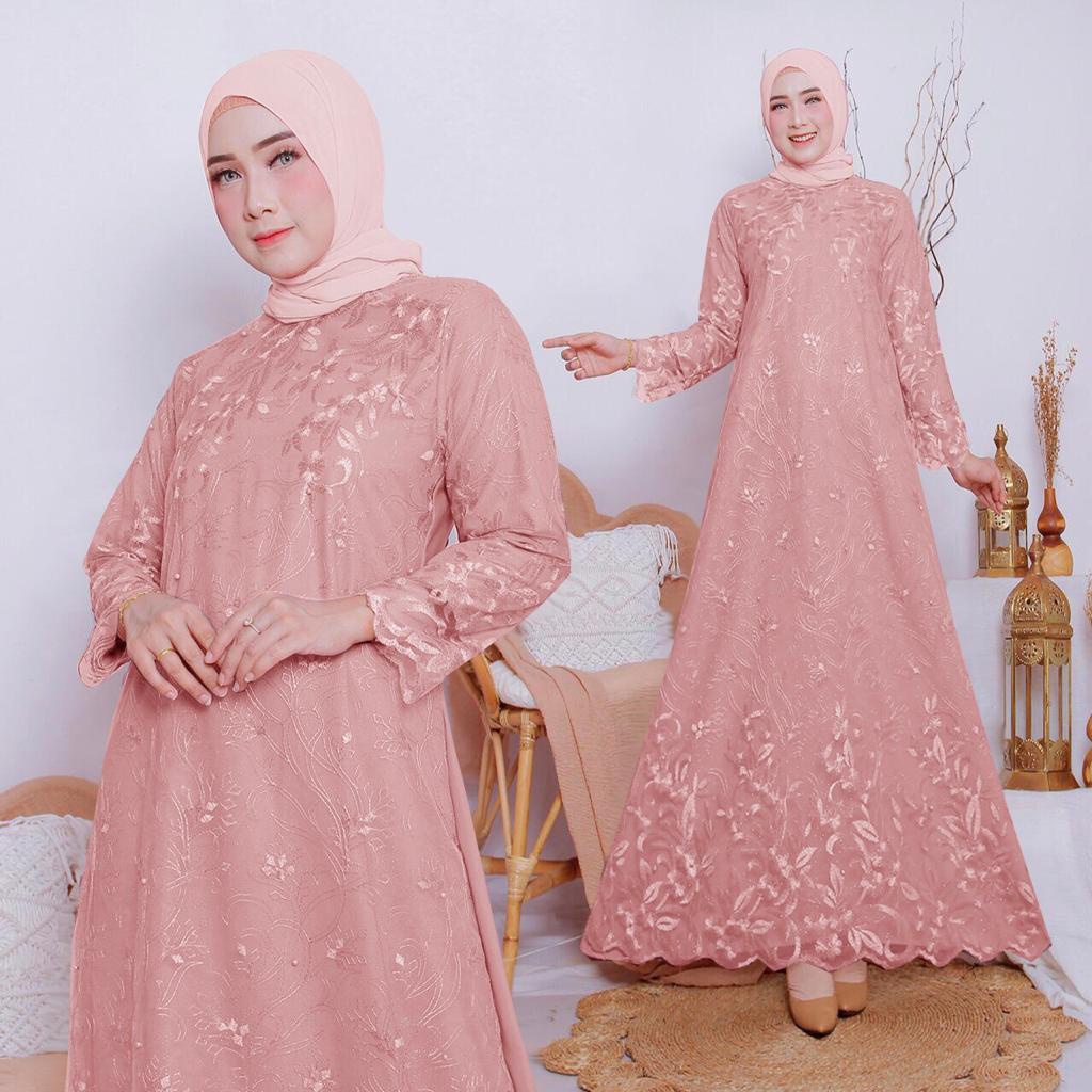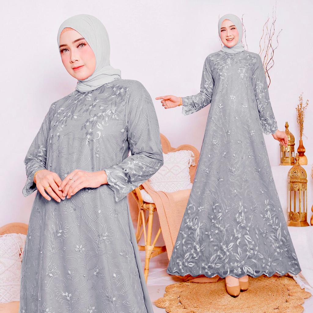 Zura Gamis Brukat Tile Lebaran Kondangan Pesta Fashion Muslim Wanita Remaja Dewasa - Size M L XL XXL Jumbo
