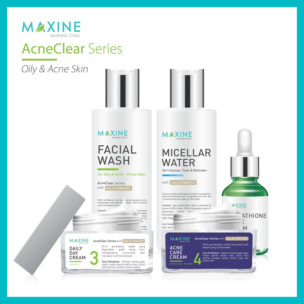 [ PAKET LENGKAP ] MAXINE ACNECLEAR SERIES with Galactomyces Perawatan Kulit Wajah Jerawat