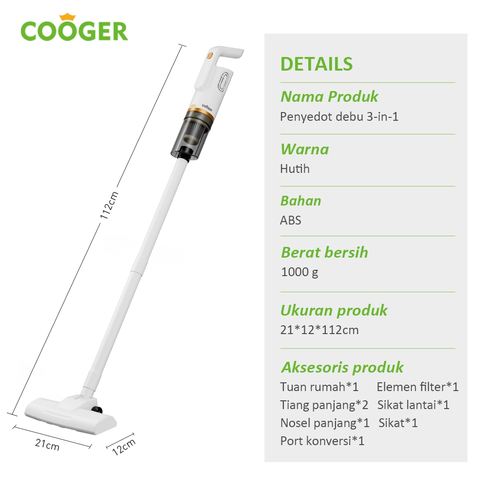 [LIVE BELI 1 DAPET BANYAK] COOGER 5IN1 Vacuum Cleaner Penyedot Debu Serbaguna dengan Daya Hisap Kuat Vacuum Cleaner Debu Untuk Lantai dan Sofa Dengan Gagang Putih