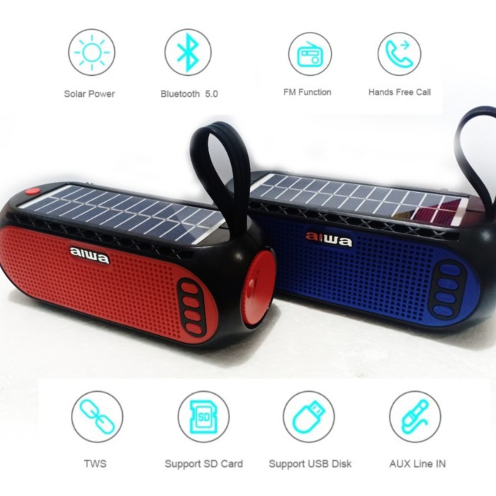 aiwa senter solar panel speaker bluetooth boombox stereo musik lampu