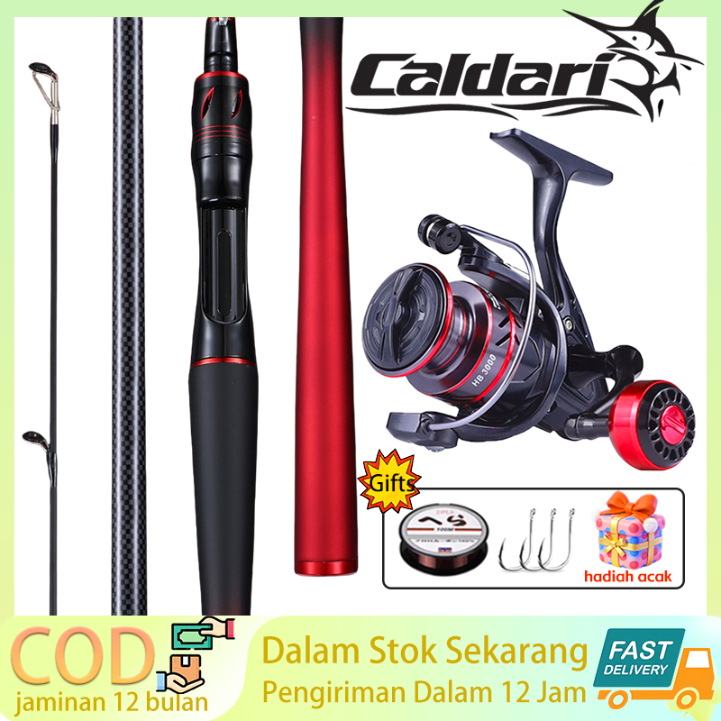 Setelan Joran Pancing Caldari Merah (1.8-3.0M) + Reel Metal Spinning 5.2:1 – Cod Gratis Ongkir + Hadiah