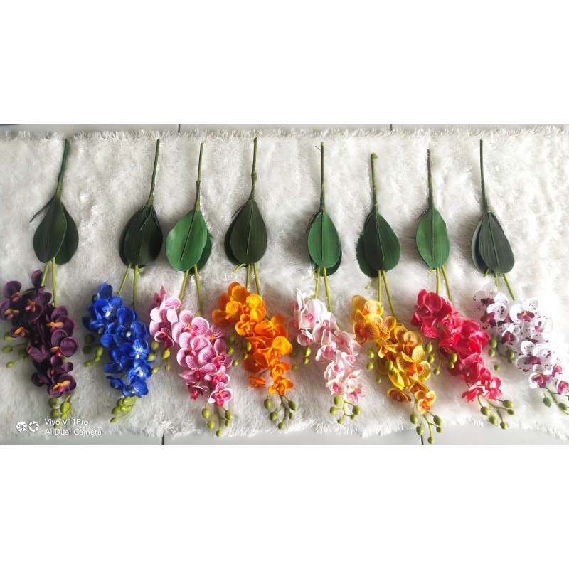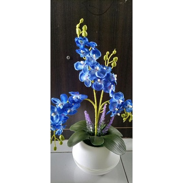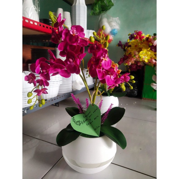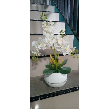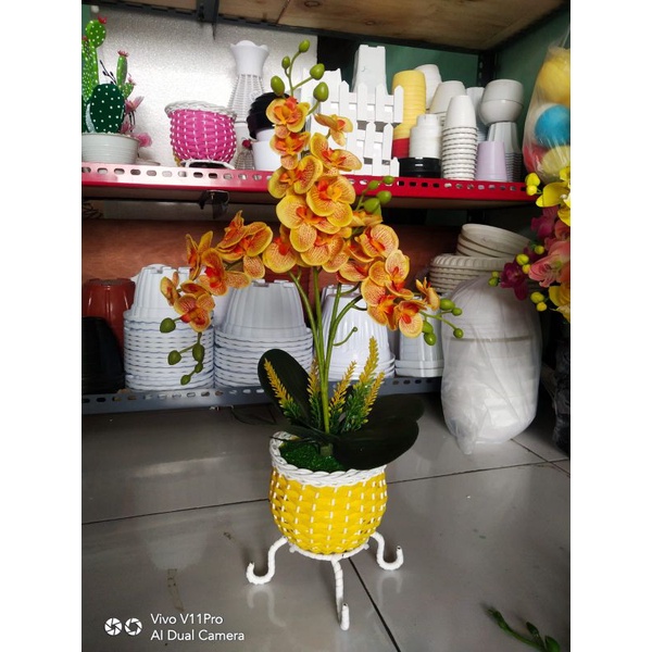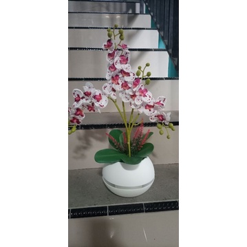 anggrek set pot bulat c4 bunga artificial anggrek plastik