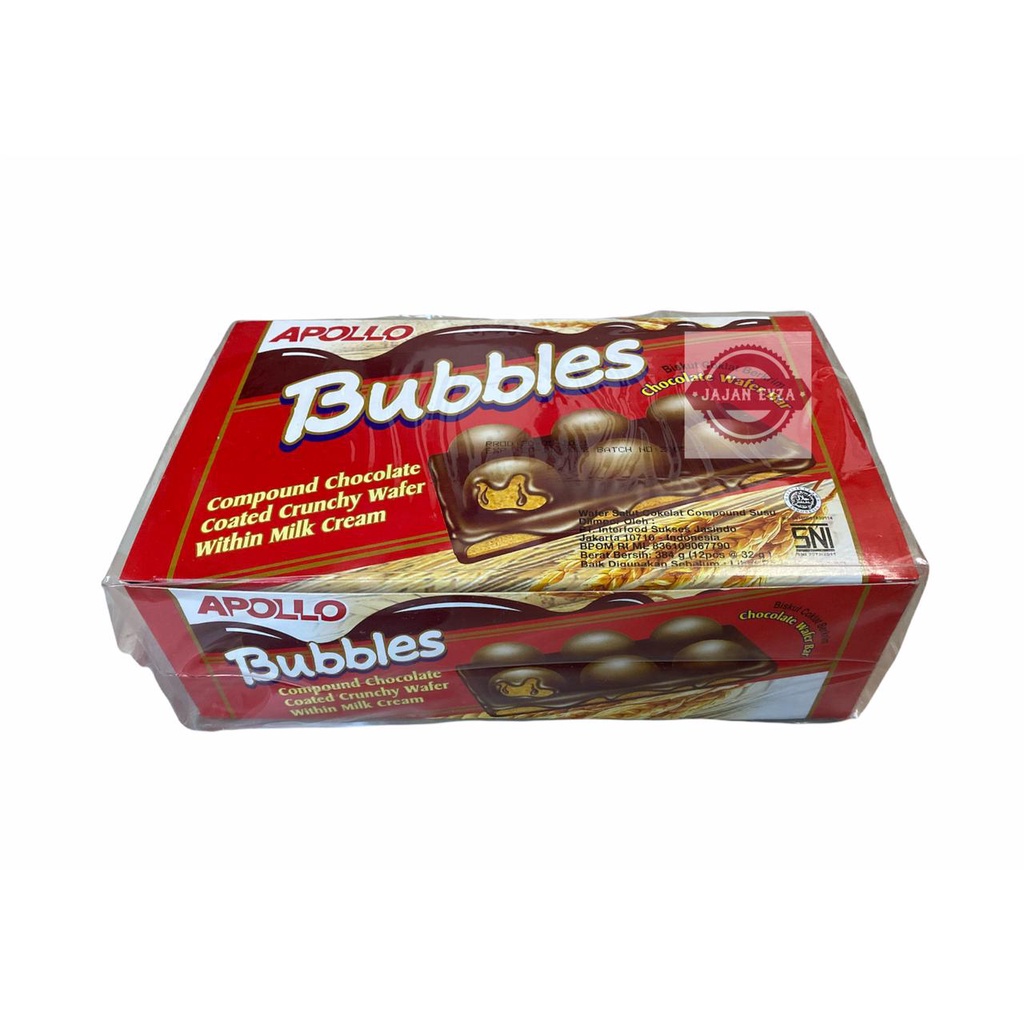 apollo bubbles box (12pcs X 32gram) apollo wafer coklat apollo bubbles chocolate wafer bar