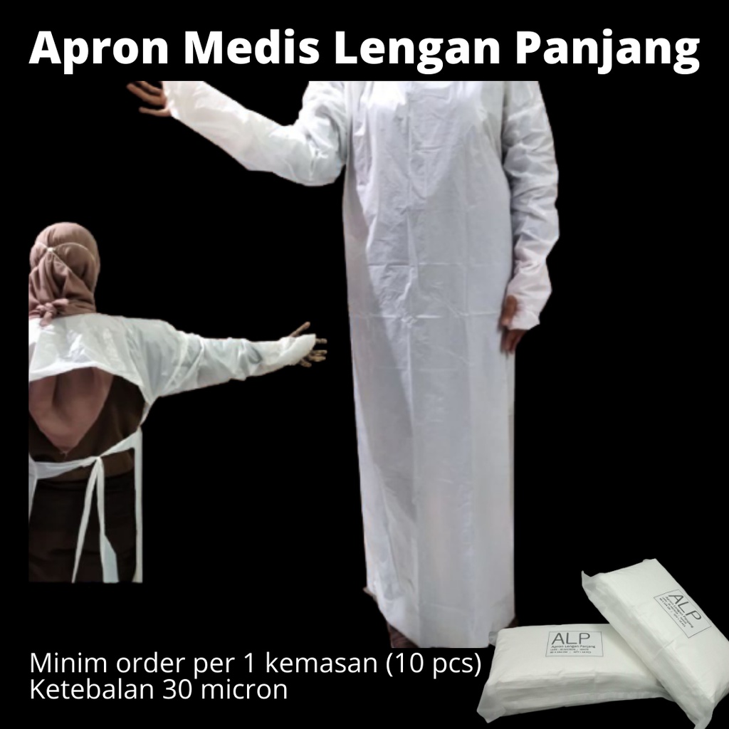 apron medis lengan panjang 30 micron celemek plastik clemek disposible