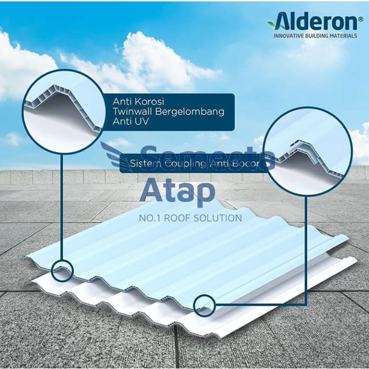 Atap uPVC Alderon -830 10 mm (Warna Biru dan Putih Doff) - Atap Berongga Double Layer
