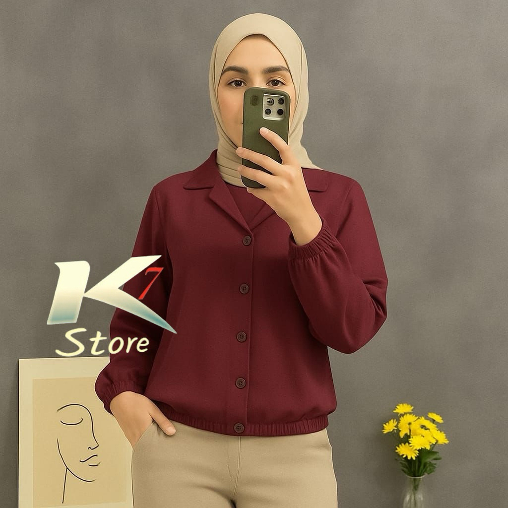 atasan wanita polos blouse cringkle kancing atas tangan karet model terbaru/ atasam wanita polos top/star plus