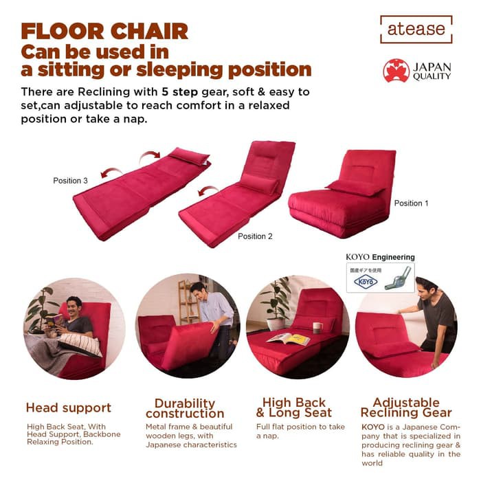 atease Reclining Floor Chair by INOAC - Sofa Bed Lipat/Kursi Lantai Multifungsi/Sofa Reclining Jepang