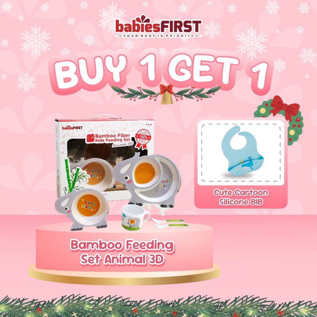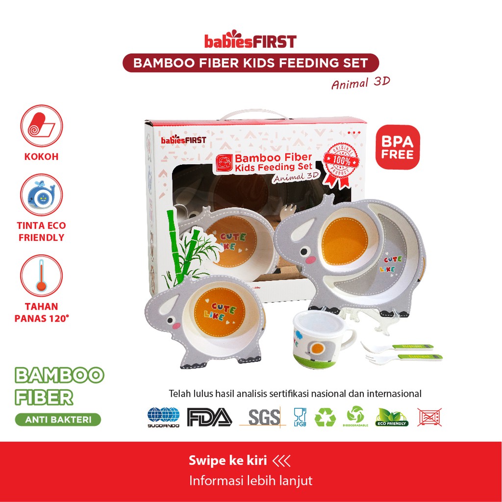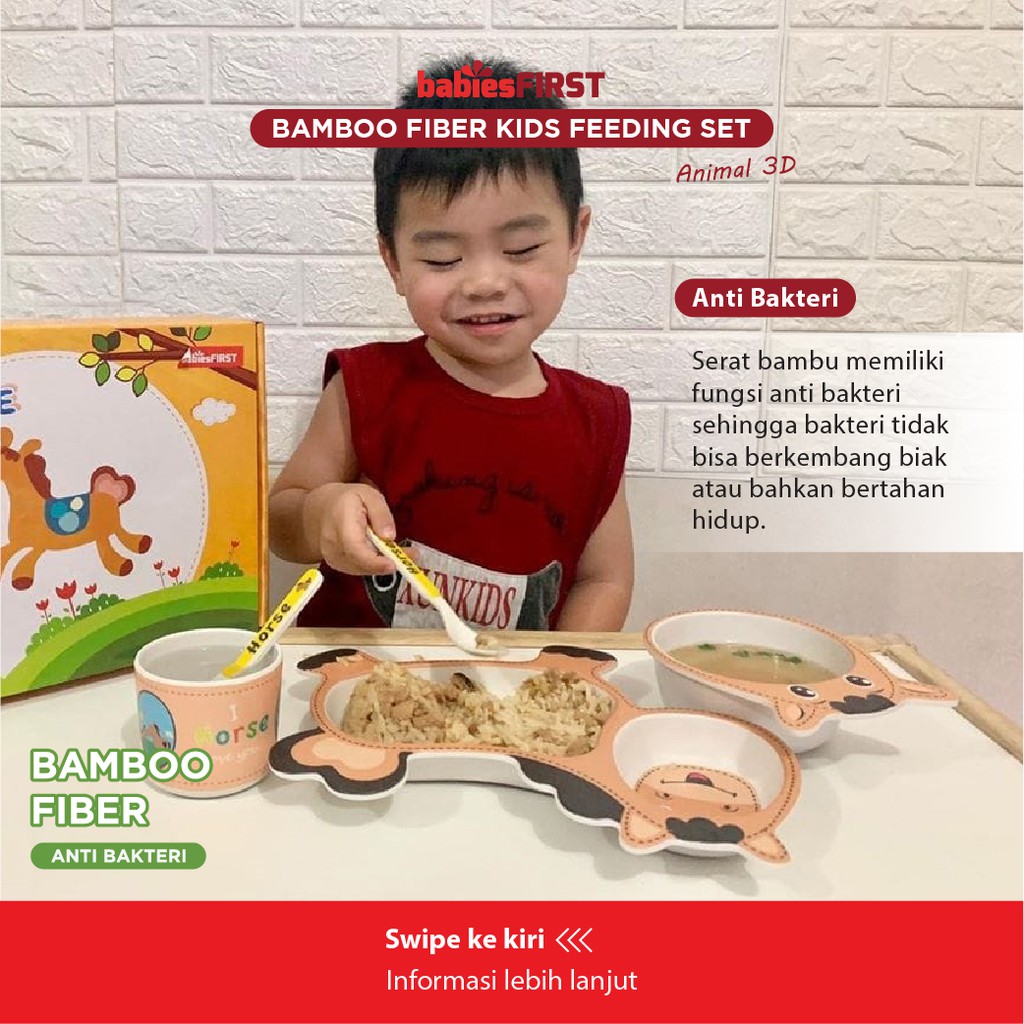 babiesFIRST Bamboo Feeding Set Animal 3D / Feeding Set Baby / Peralatan Makan Bayi Set Lucu / Alat Makan Anak / Tempat Makan Balita / Piring Anak