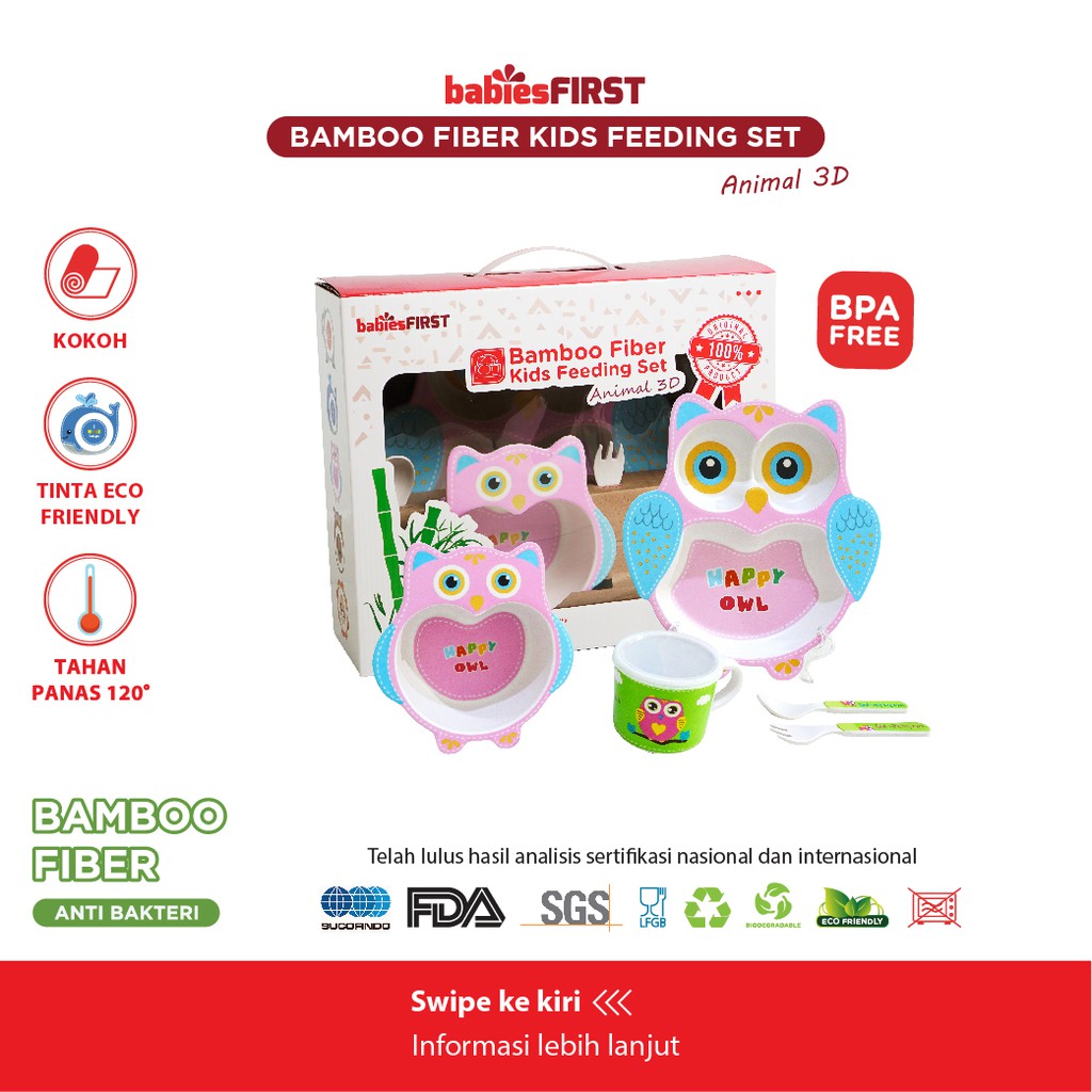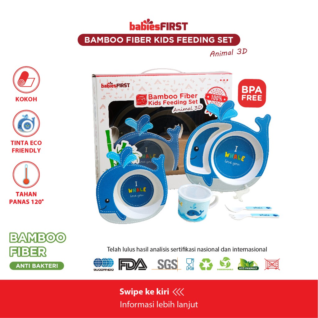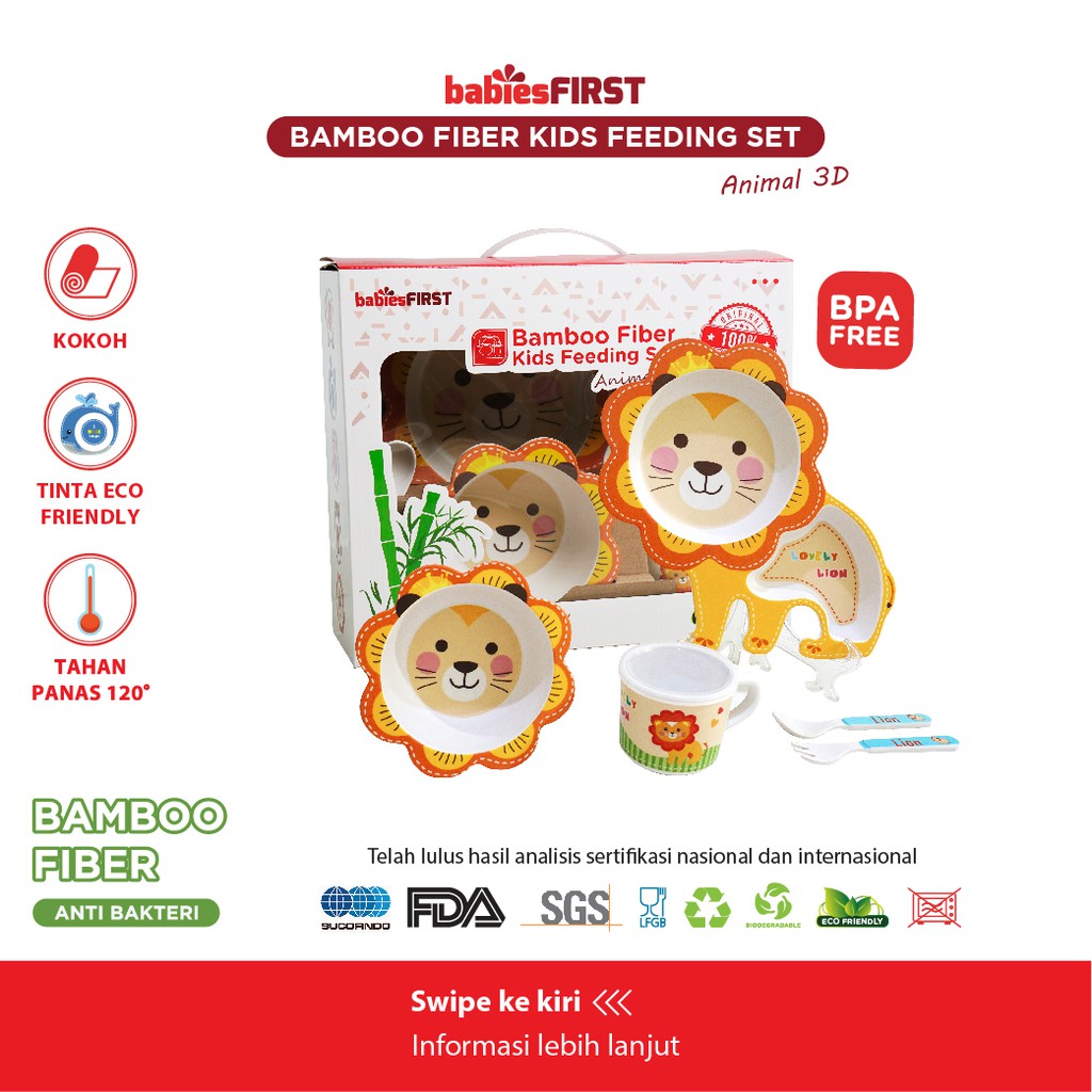 babiesFIRST Bamboo Feeding Set Animal 3D / Feeding Set Baby / Peralatan Makan Bayi Set Lucu / Alat Makan Anak / Tempat Makan Balita / Piring Anak