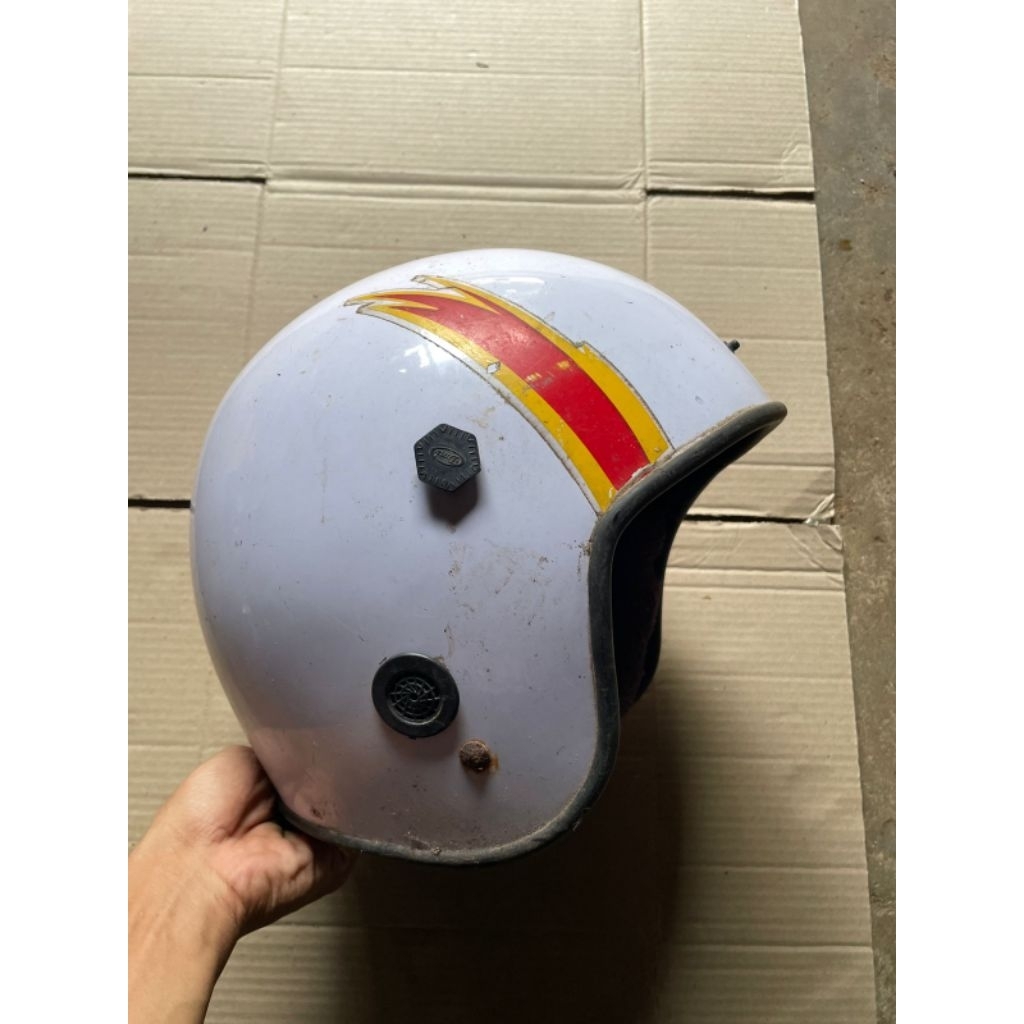 bahan helm jadul Yamaha lidah api warna putih second original