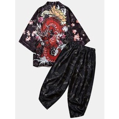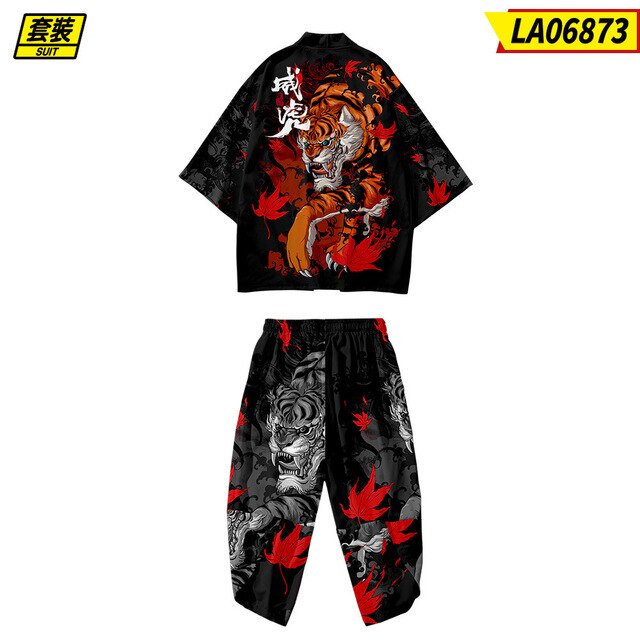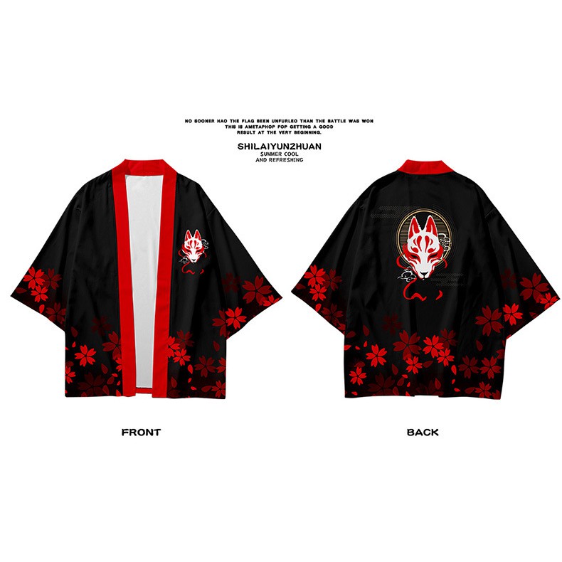 baju Fashion Men Women Kimonos Fox Print Hitam Beach Cardigan Harajuku Kimono Jepang Wanita Pria Anime Pakaian bisa di custom