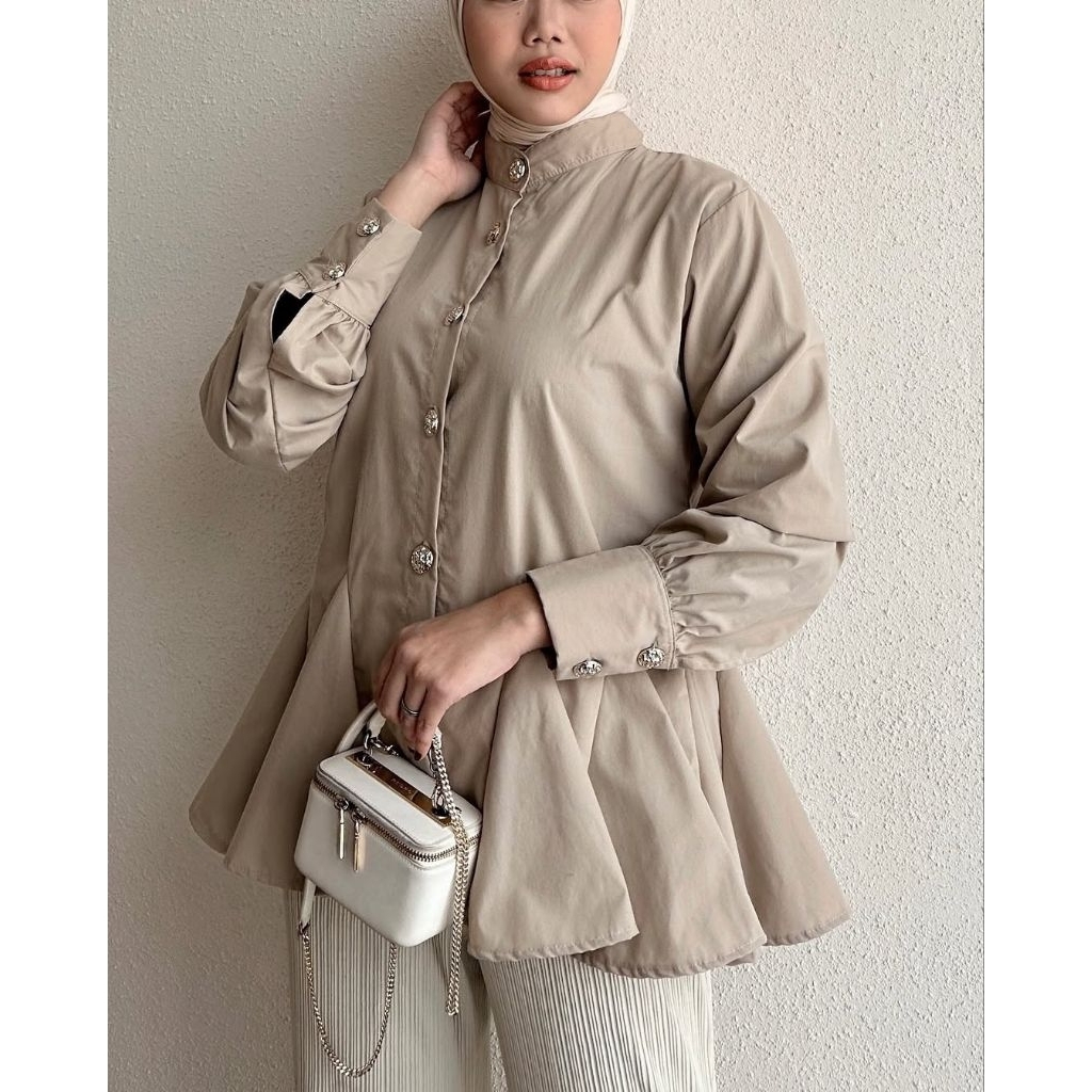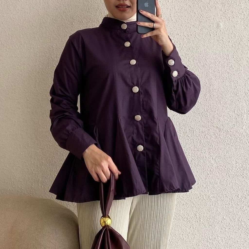 Blouse katun polos queen/ atasan wanita kancing mutiara/atasan remaja putih wanita terbaru lengan panjang kekinian /katun toyobo murah premium