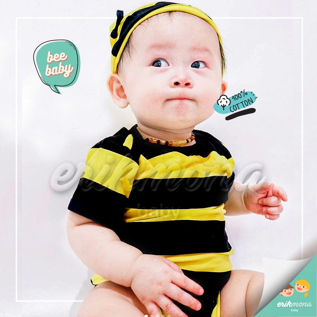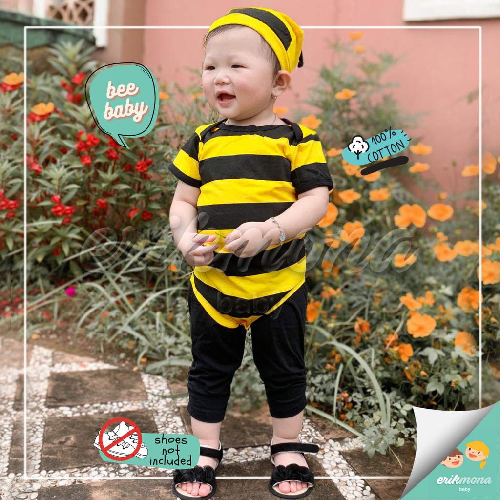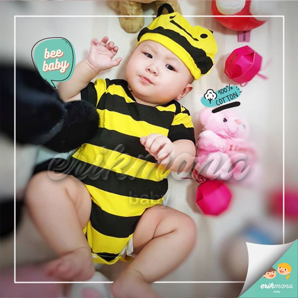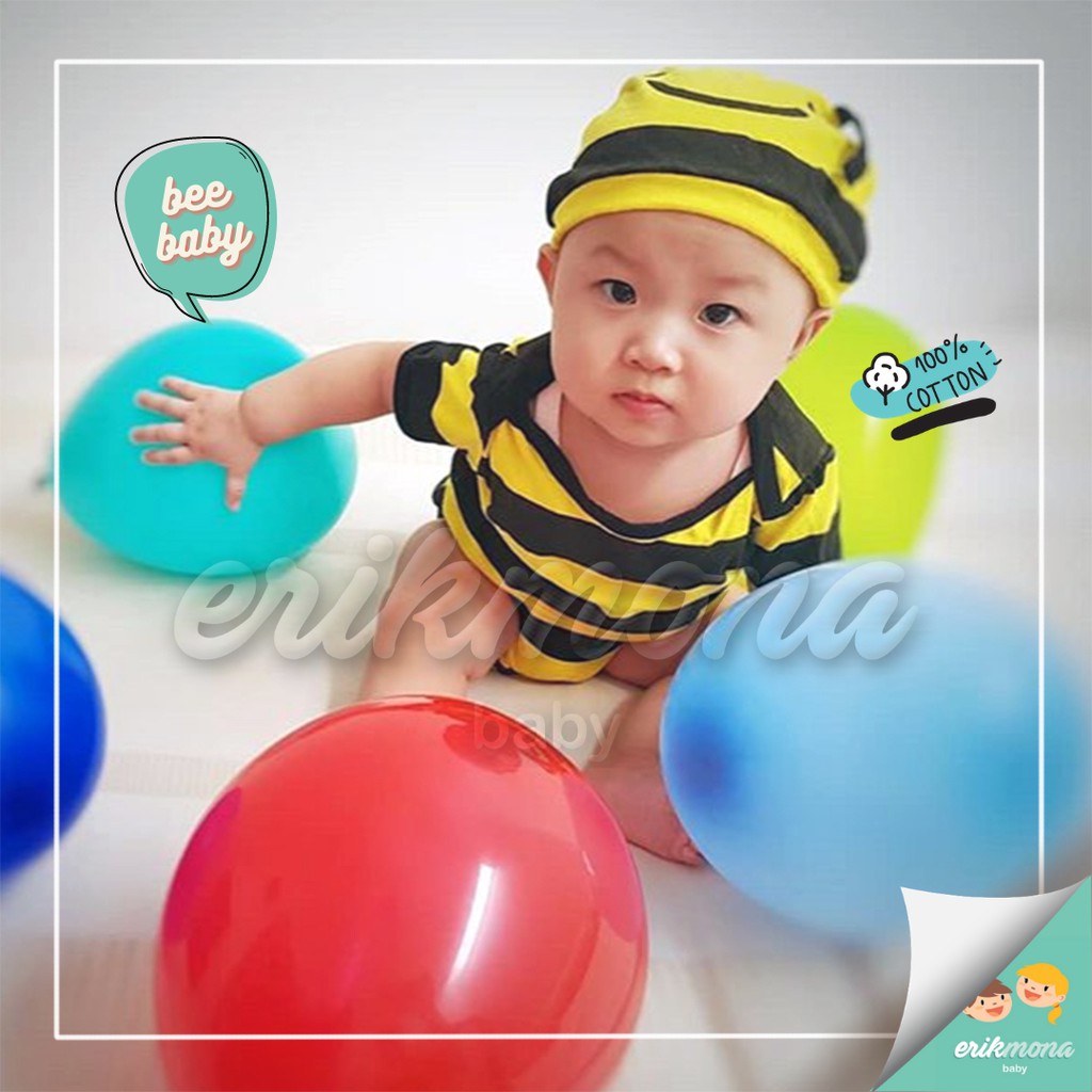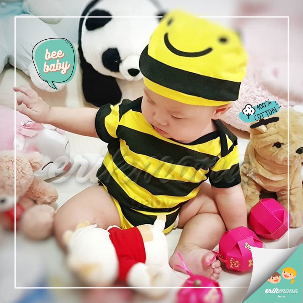 Ermon Baby - Jumper Bayi Laki Laki Perempuan Jumper Baby Cowok Cewek Lucu Karakter Lebah Bee + Topi Usia 0 - 12 Bulan