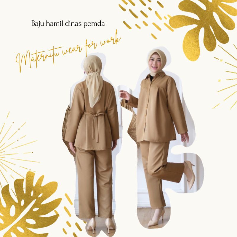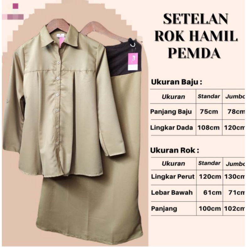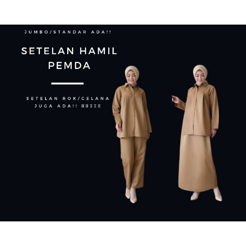 Setelan pemda/wanita hamil/seragam hamil/pemda hamil/PNS khaky muda setelan rok dan setelan celana