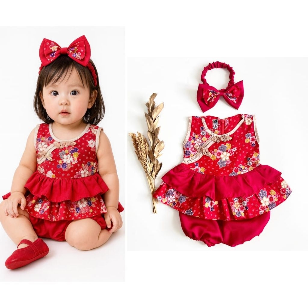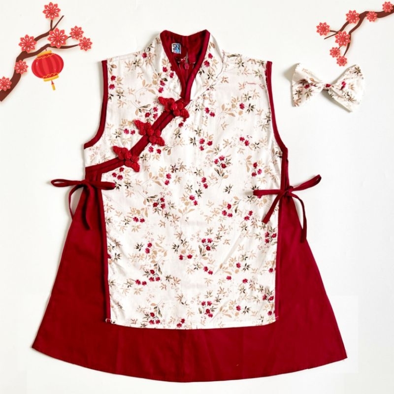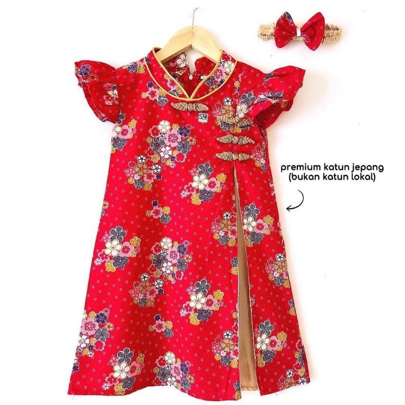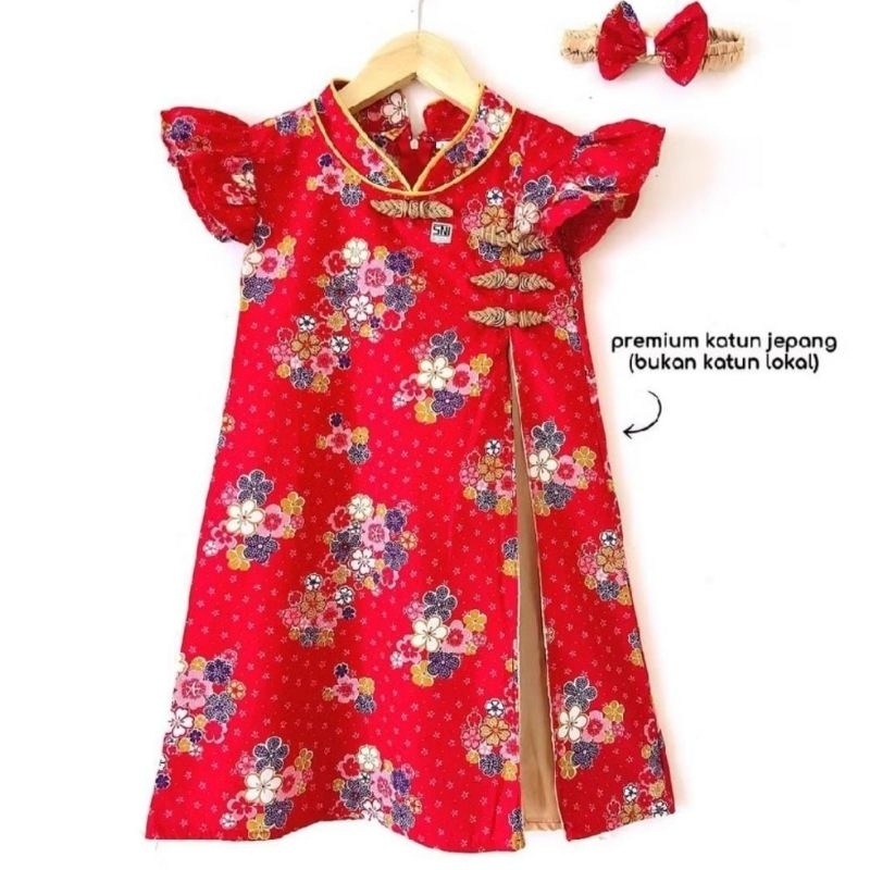 baju imlek cheongsam dress merah bunga ungu anak perempuan cewek