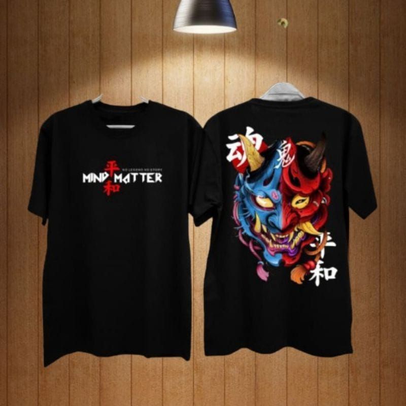baju kaos pria / kaos japanese / kaos style Jepang / kaos jepang / kaos samurai / kaos tanduk kaos distro lengan pendek motif Desain Jepang // kaos Keren Peria // motip Topeng iblis // mindmatter iblis 2 Rupa