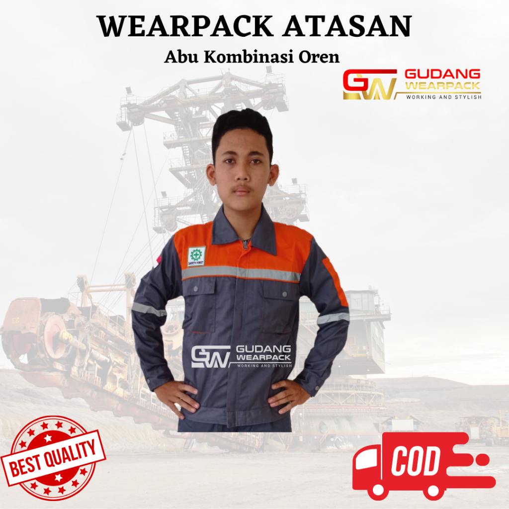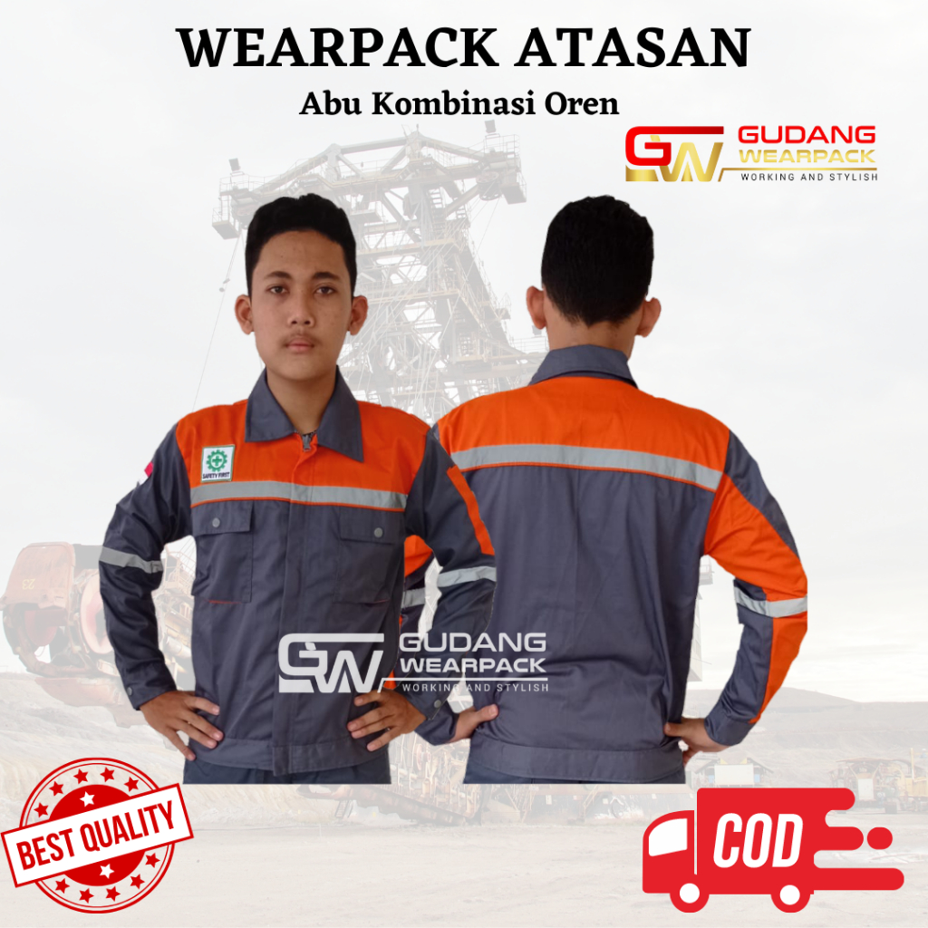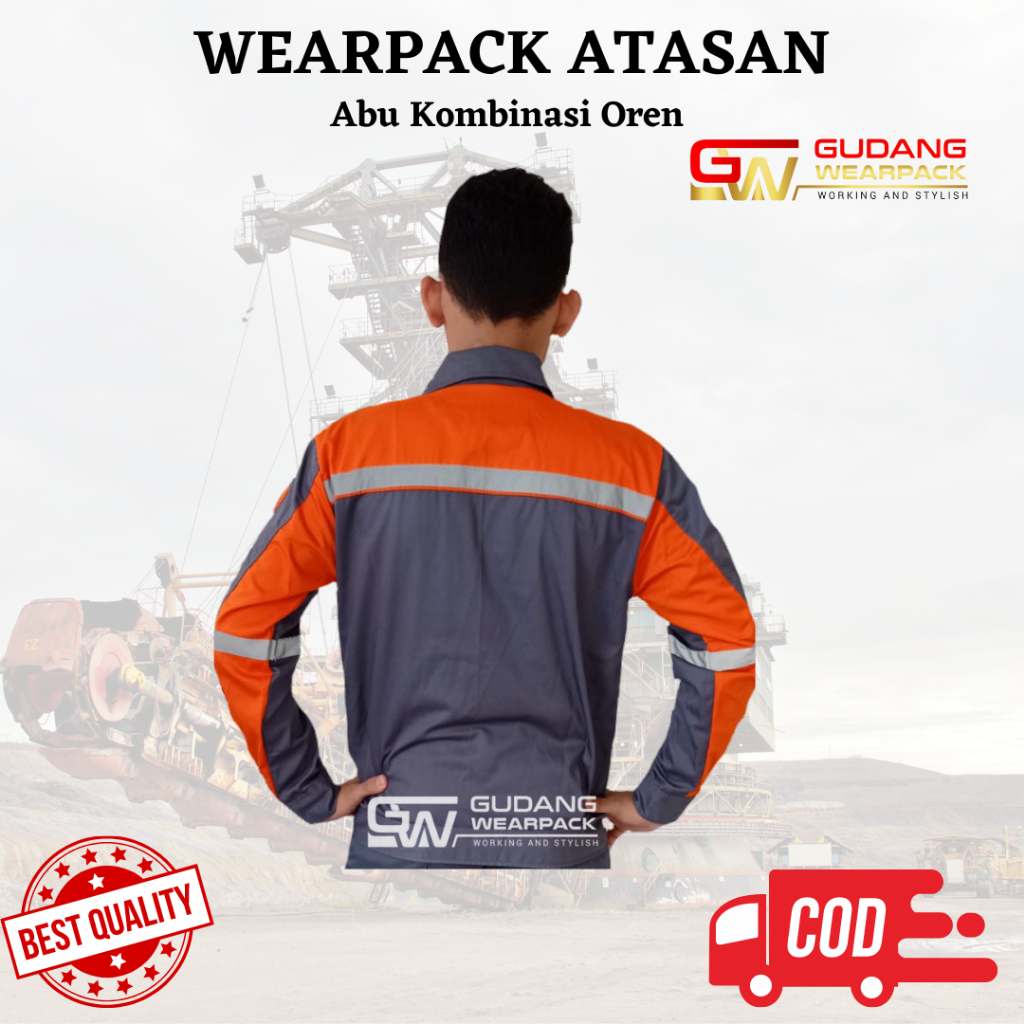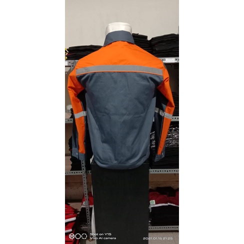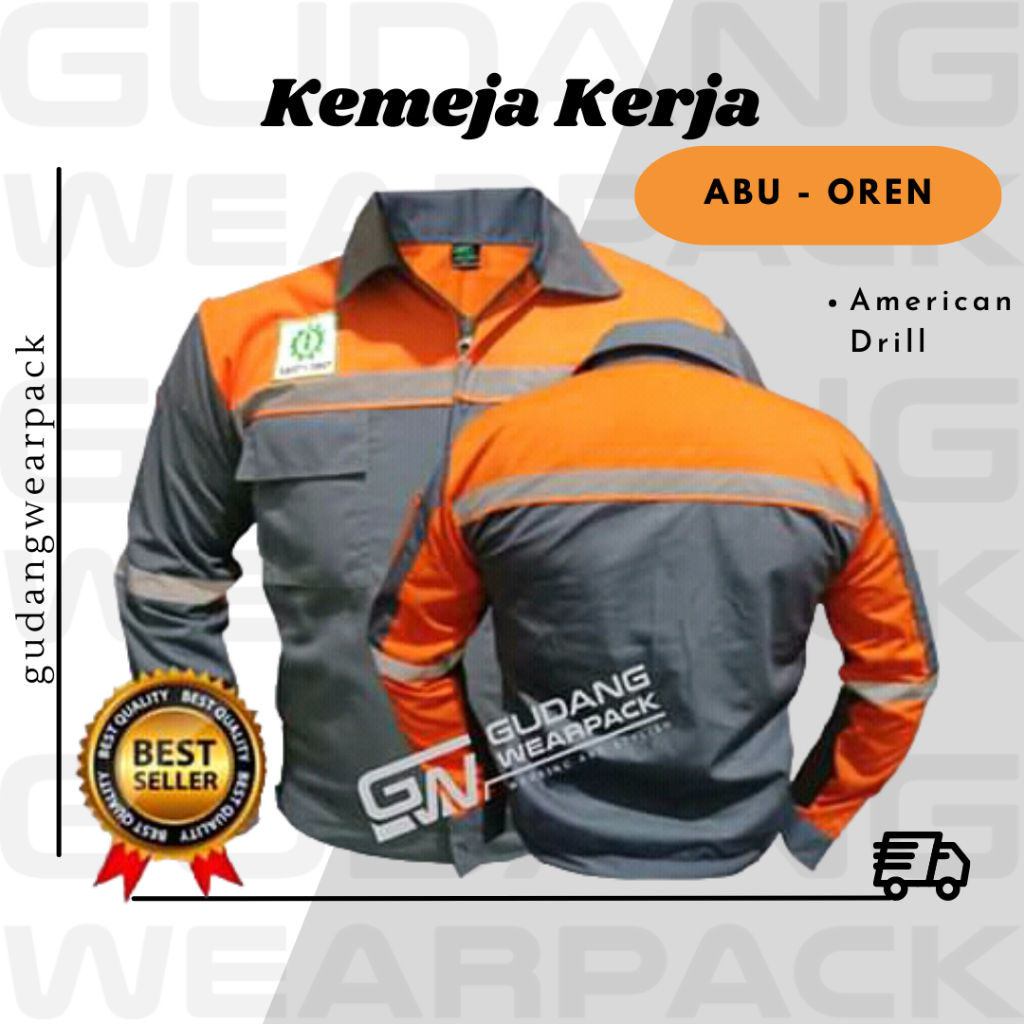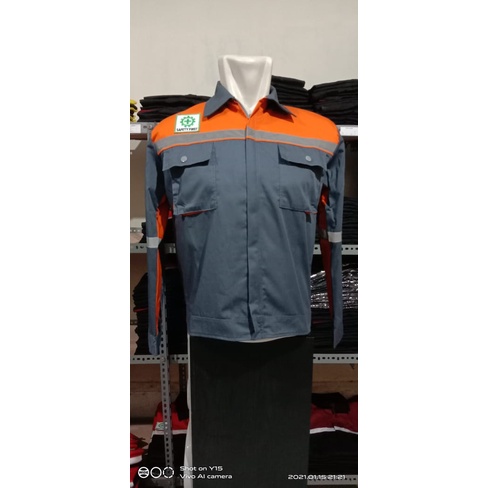Baju Kerja/Seragam Proyek ATASAN Kemeja Lengan Panjang Warna ABU KOMBINASI OREN