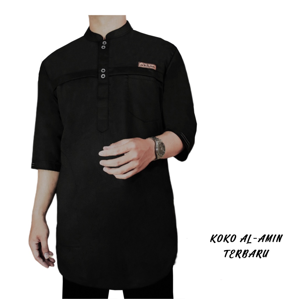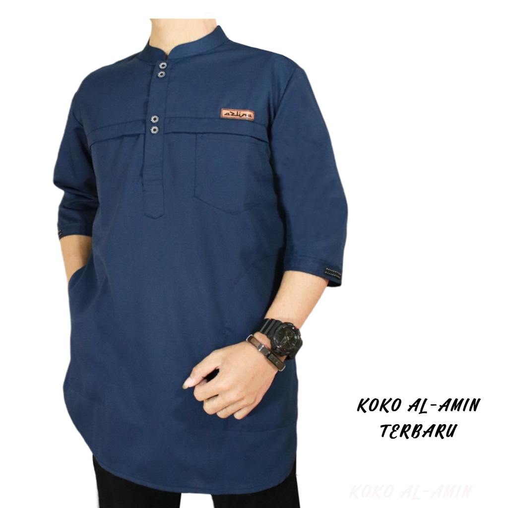 Baju koko Pria kurta al amin tangan 3/4 Bahan Cotton Toyobo koko dewasa modern bisa COD