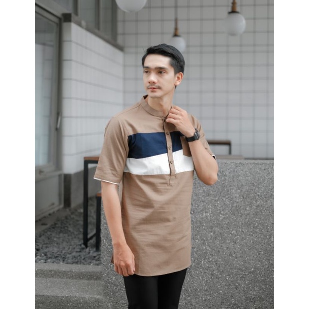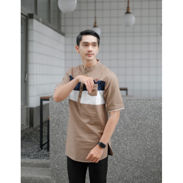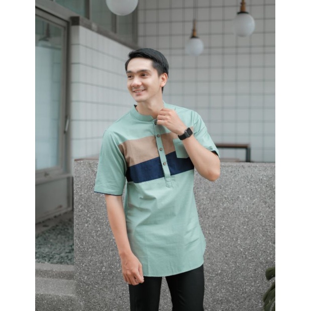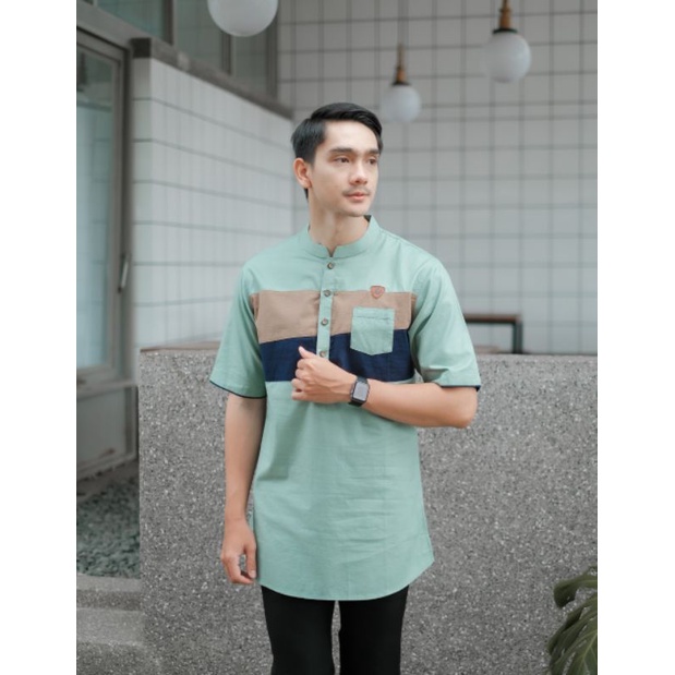 baju koko kurta hijau mint lengan pendek kurta kemko khaleed simple kasual koko kurta lengan pendek BAJU KOKO SIMPLE MODERN COMBINASI LENGAN PENDEK