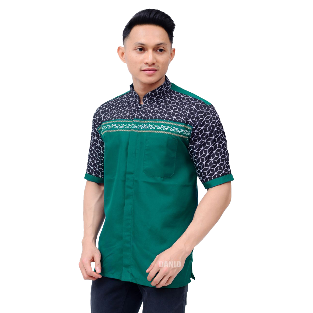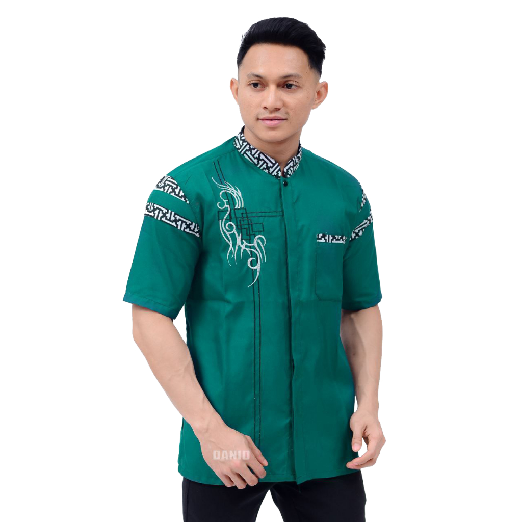 baju koko warna hijau botol lengan pendek baju koko kombinasi baordir pria dewasa