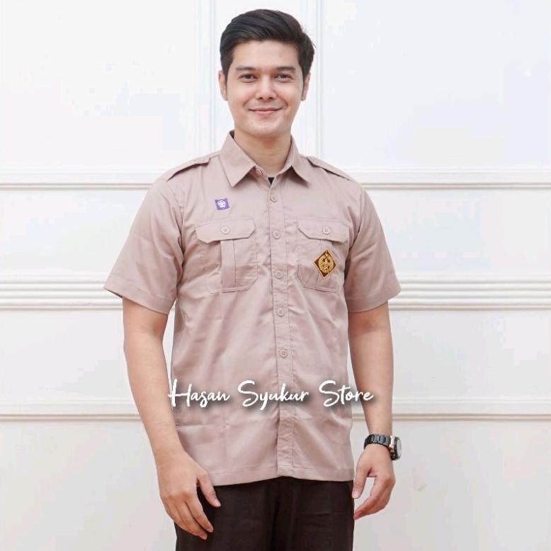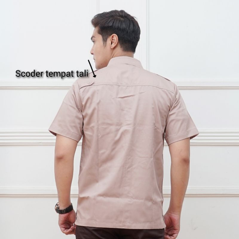 baju seragam pramuka pembina PRIA lengan pendek warna pramuka coklat muda (Drill)