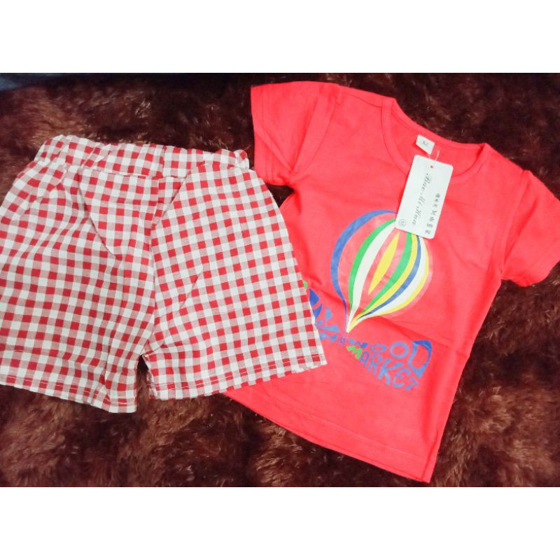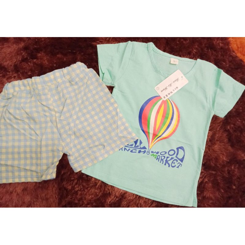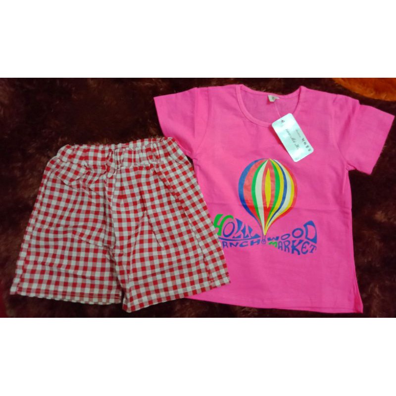 baju setelan berkarakter balon udara bawahan kotak-kotak