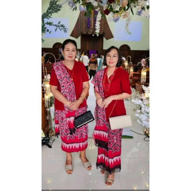 baju setelan tas dan selendang toraja tenun warna merah tenun blanket