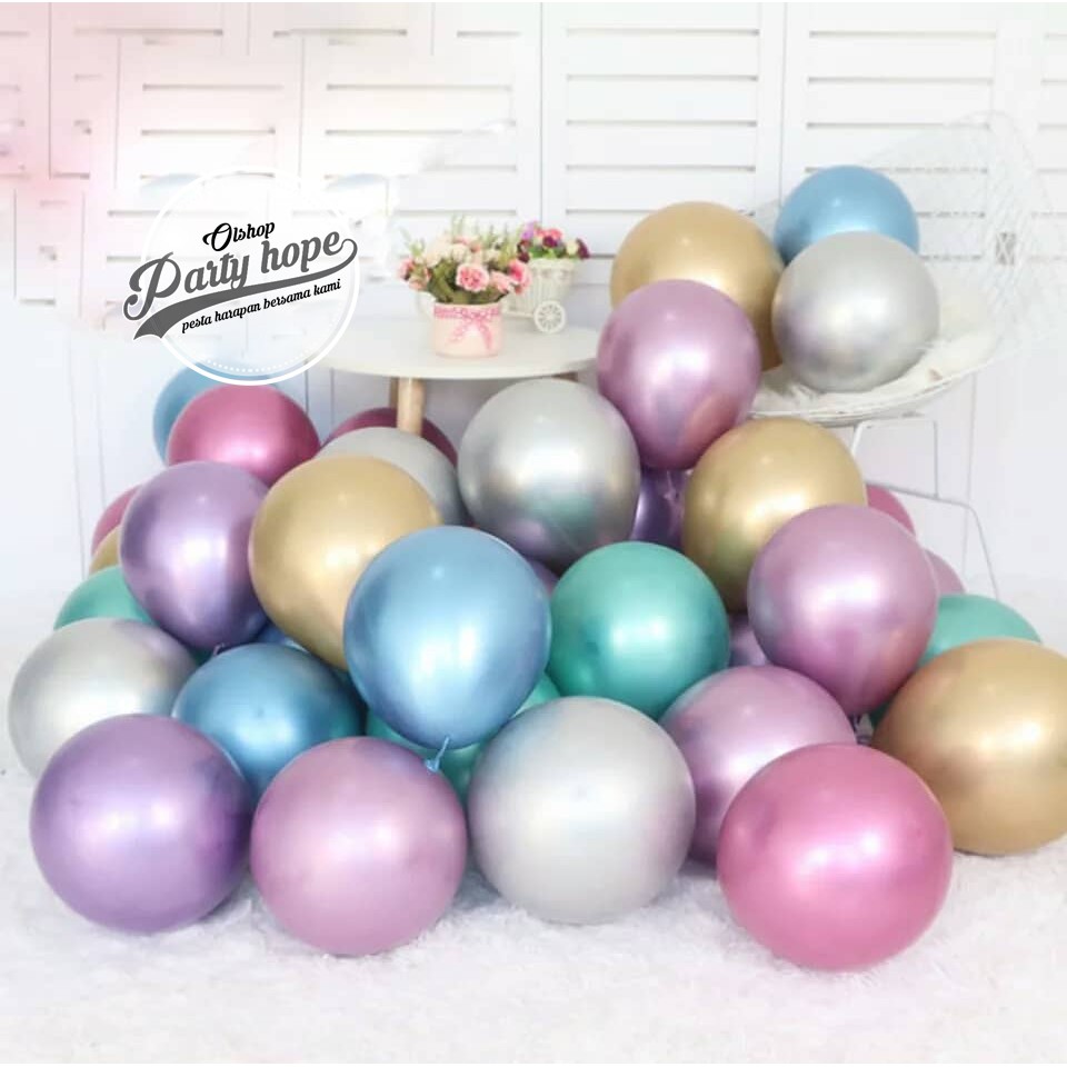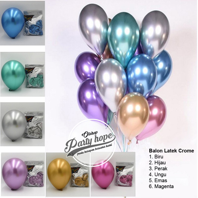 Balon chrome isi 50 12 inch / Balon Latex Metalik Chrome / Metalic Balon Chrom / balon dekorasi