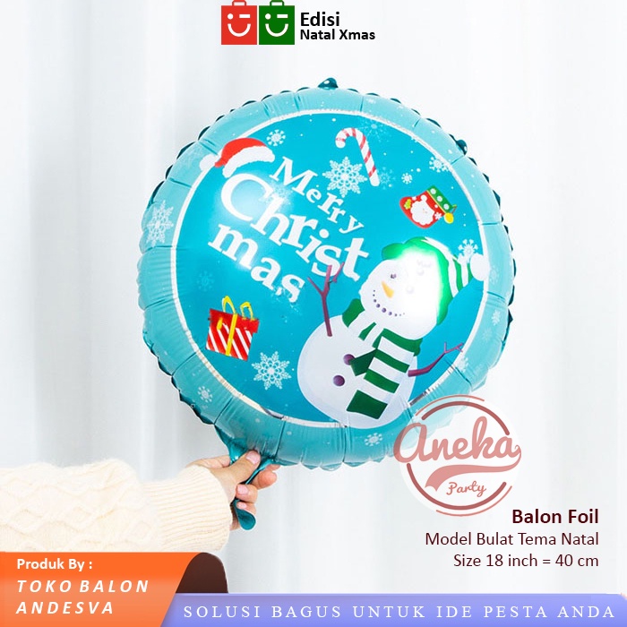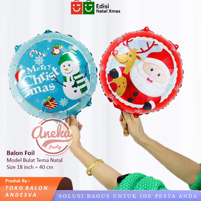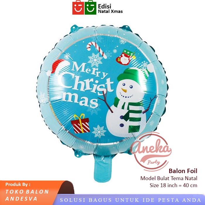 balon foil bulat natal / balon bulat xmas / balon karakter christmas / foil bulat natal