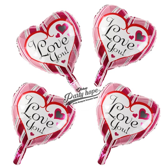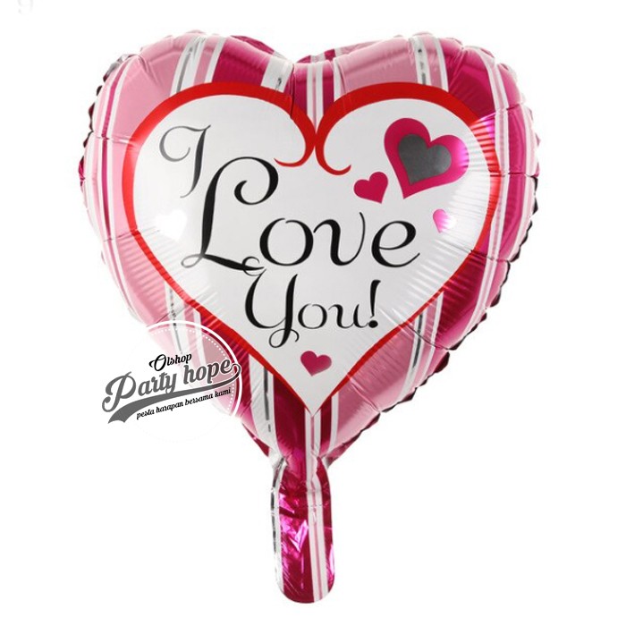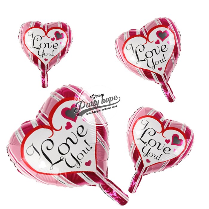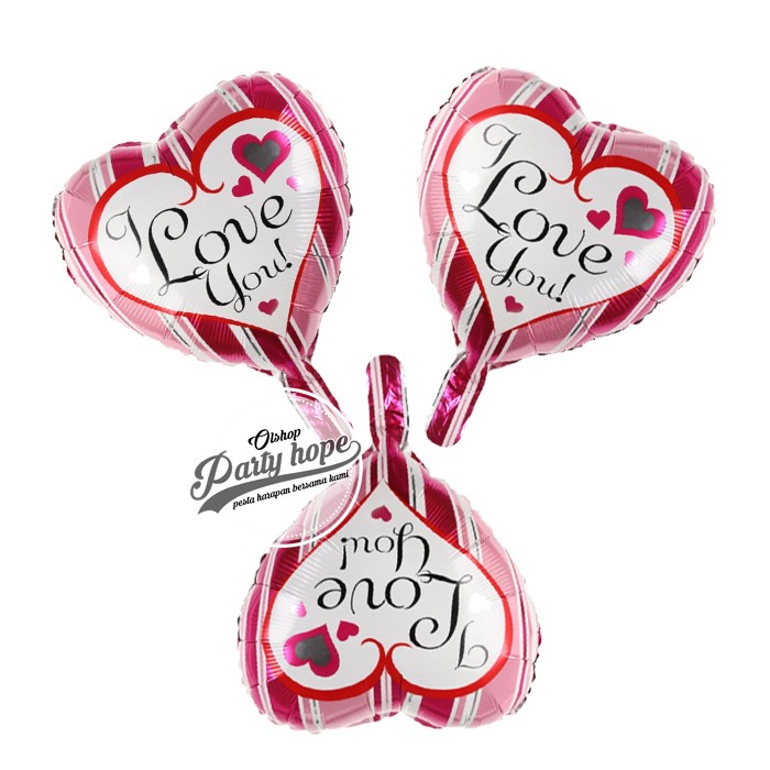 balon foil hati i love you pink garis / balon hati pink motif / balon valentine