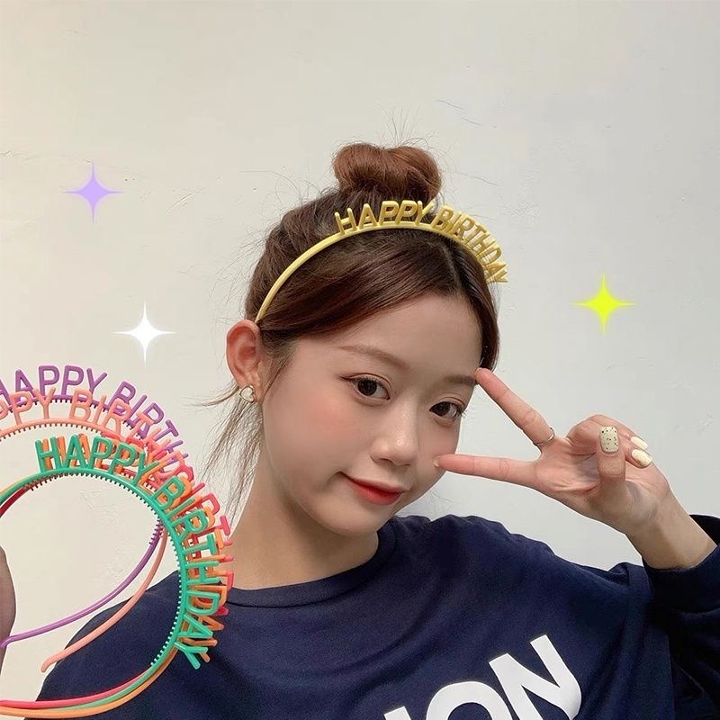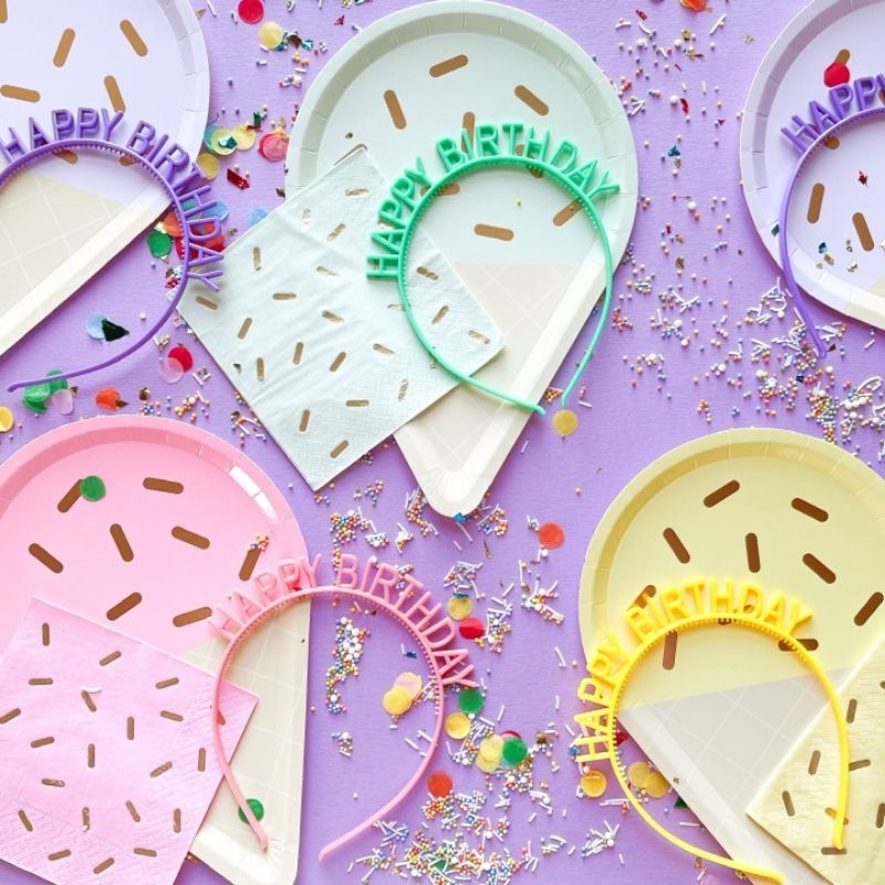 bando ultah ulang tahun candy warna warni headband birthday headband happy birthday plastik anak anak dewasa remaja wanita HBD Photoshoot ikat kepala huruf