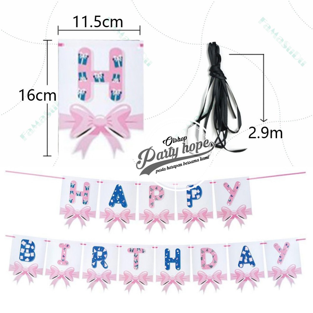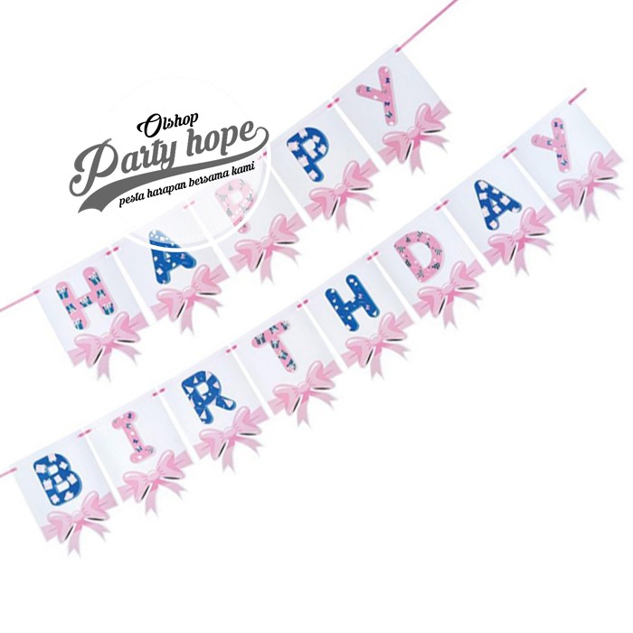 banner HBD motif pita / bunting flag hbd putih pink / banner ultah HBD
