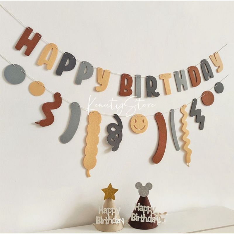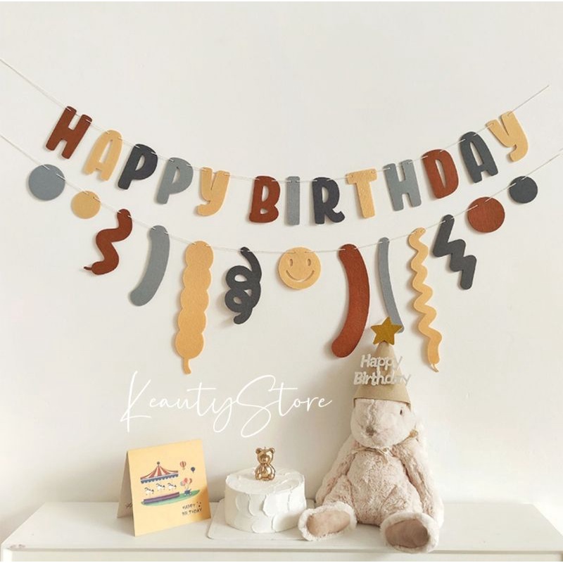 banner happy birthday, banner ulang tahun, ultah garland korea, aesthetic, banner estetik, dekorasi ulang tahun, wedding, bridal shower, baby shower, bride to be, murah lucu