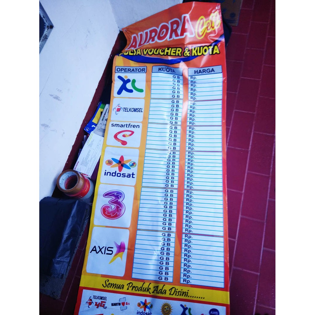 banner spanduk daftar harga pulsa kuota konter hp plang promosi iklan harga pulsa all operator