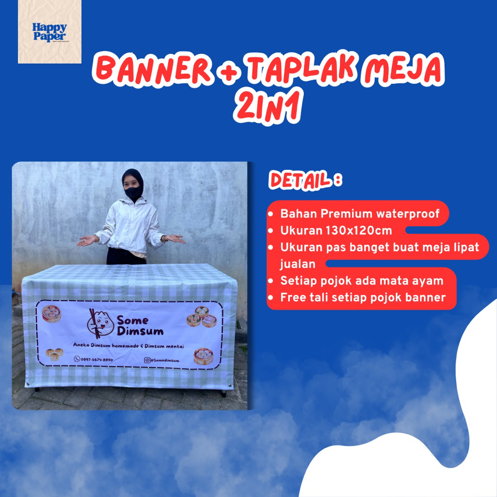 banner taplak meja jualan 2 in 1 | banner jualan | banner meja | spanduk meja